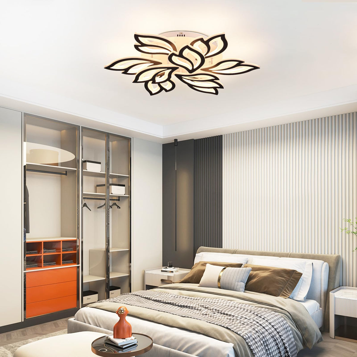 Garwarm Led Ceiling Light Dimmable Modern Flower Shape Flush Mount Ceiling Lamp 75W Acrylic Petals Ceiling Chandelier Lighting With Remote Control For Living Room Bedroom Dining Room (Black)