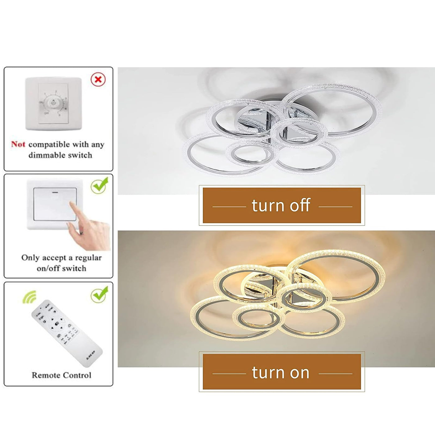 The ceiling lamp features well-made materials, including durable aluminum and acrylic, ensuring longevity and an elegant appearance. Its dimmable LED technology allows you to adjust the brightness and color temperature from 3000K to 6000K, making it suitable for various settings. With a smooth surface that is easy to clean, this lamp maintains its aesthetic appeal over time.