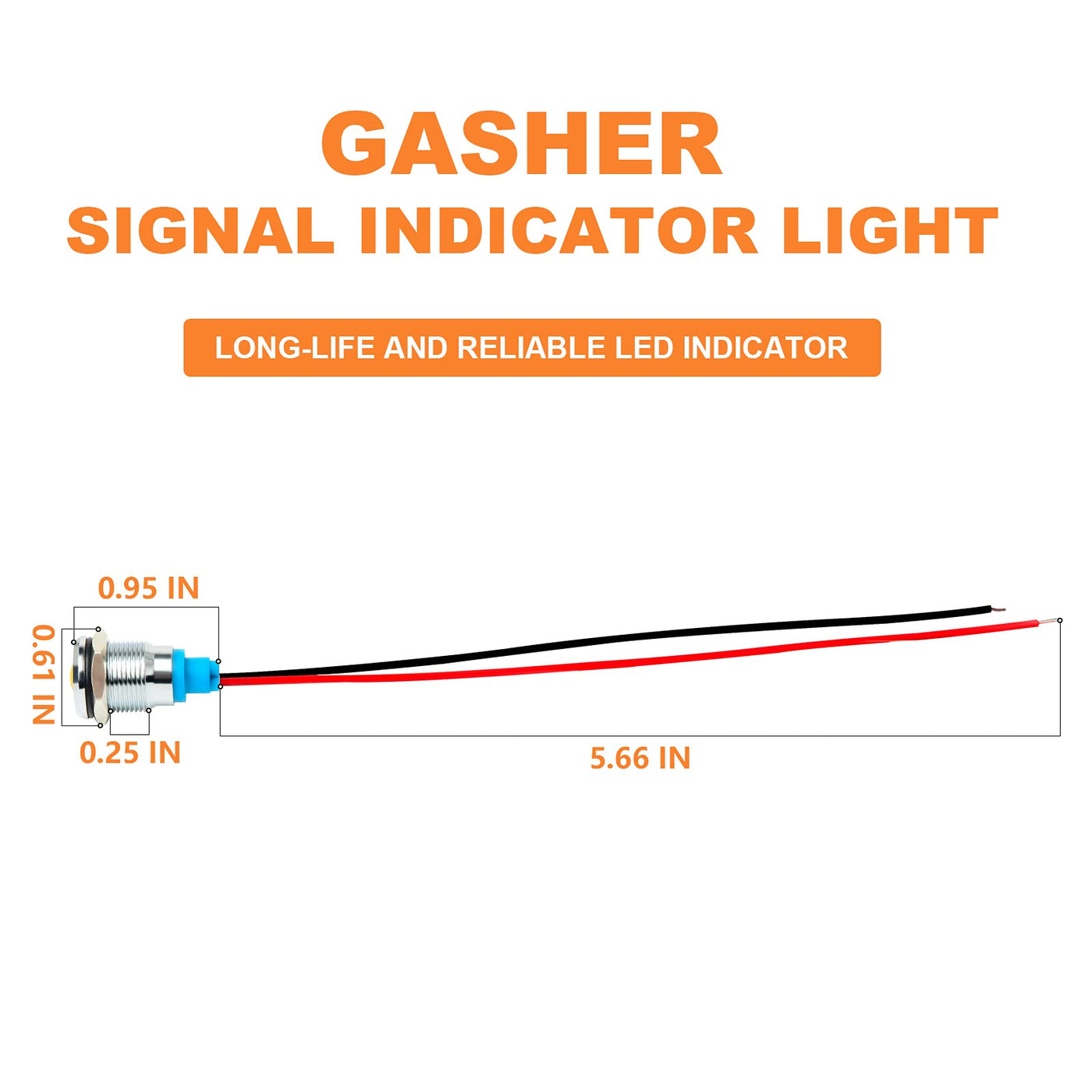Q: What are the dimensions of the mounting hole required for installation?A: The required mounting hole diameter for the GASHER indicator light is 12mm (1/2 inch), ensuring a secure fit during installation.