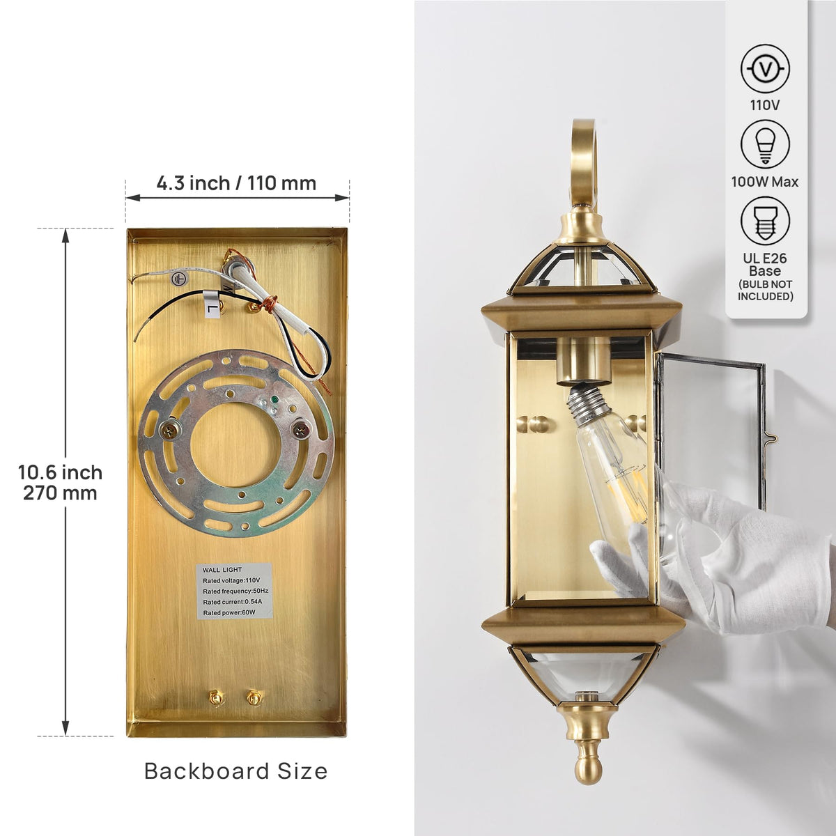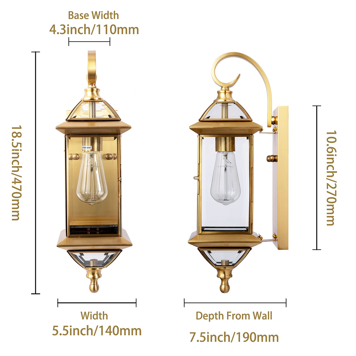 GAZE LIGHTING 18.5'' outdoor light fixture wall mount, Material: Copper & Clear Glass This outdoor lights for house takes a cubid design as the main body.The oil hand-rubbed finish makes this porch light has a distinctive beauty and modern allure.We use copper rather than iron to extend the service life of this outdoor wall light,and the exterior light fixture is easy to clean and maintain. Perfect for indoor and outdoor at the same time. We especially recommend you use it as garage,front door, porch, patio, garden, balcony, entryway outdoor lighting fixture wall mount or chritmas porch light. Notice:This porch light is waterproof and suitable for wet location.Please don’t put it exposed under the rain directly for prolonging service life. Bulb is not included, Please purchase separately. Please refer to the size information carefully before ordering. Please make sure you have cut off the electricity supply before installation.
