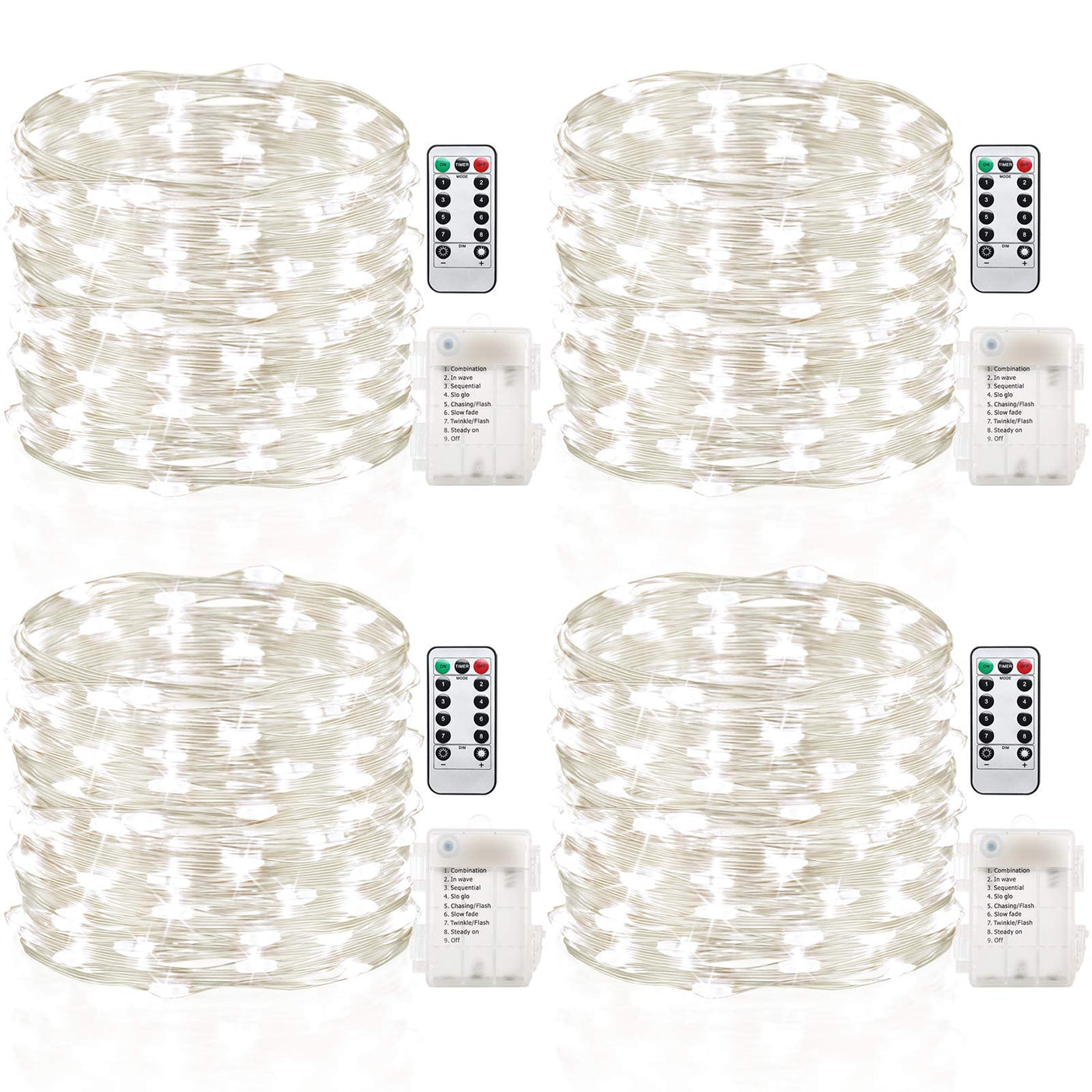 Gdeaer 4 Pack Fairy Lights Christmas Decor 16.4 Ft 50 Led Battery Operated Christmas Lights With Remote Waterproof 8 Modes Twinkle Firefly String Lights For Party Bedroom Wedding Decorations