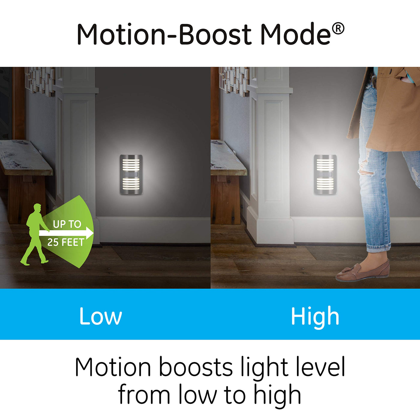 Motion Select Technology: Save money and energy with the Motion-Select switch located on the backside, allowing you to choose between Motion-Boost or Motion-Activated settings.