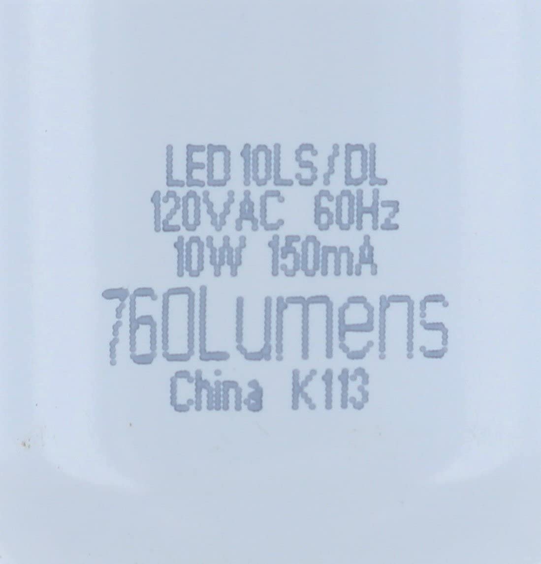 Energy-efficient 10W LED bulb, reducing electricity consumption.