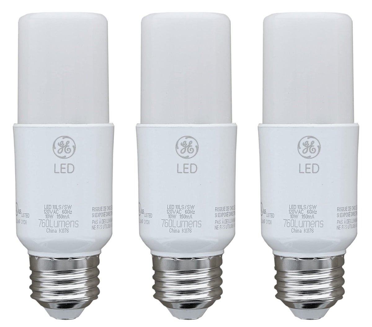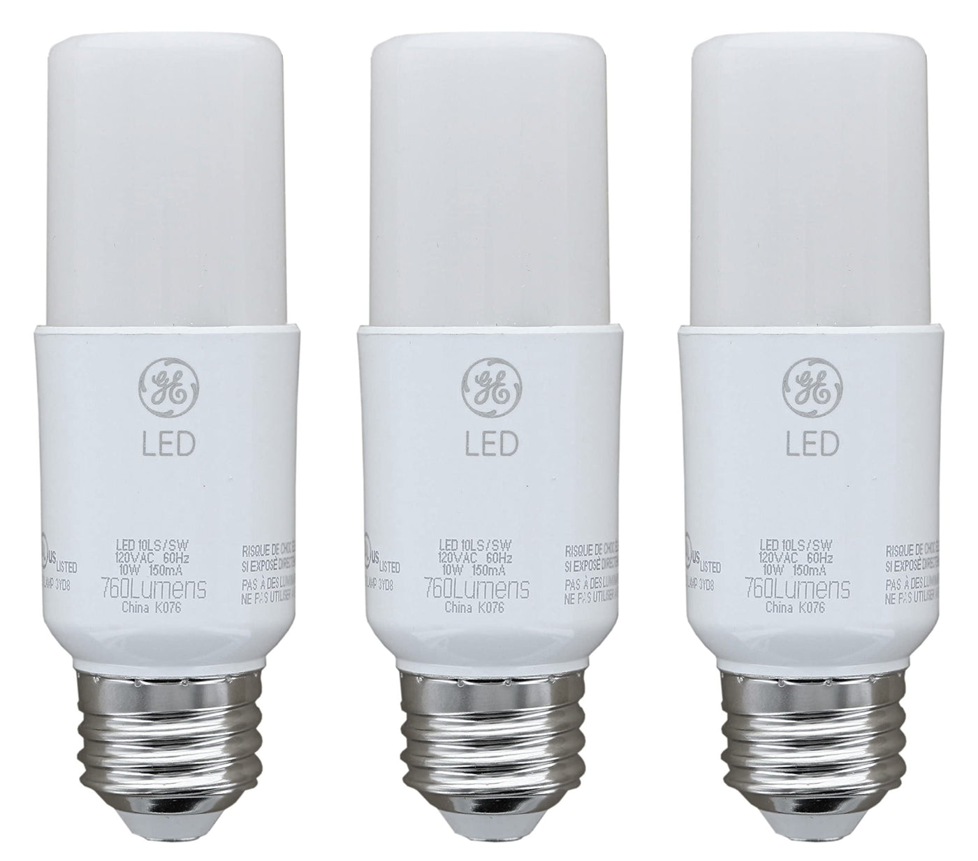 GE LED Bright Stik 10W Light Bulb, 760 Lumen, Soft White, 3 Count, Non-Dimmable, Model 32282