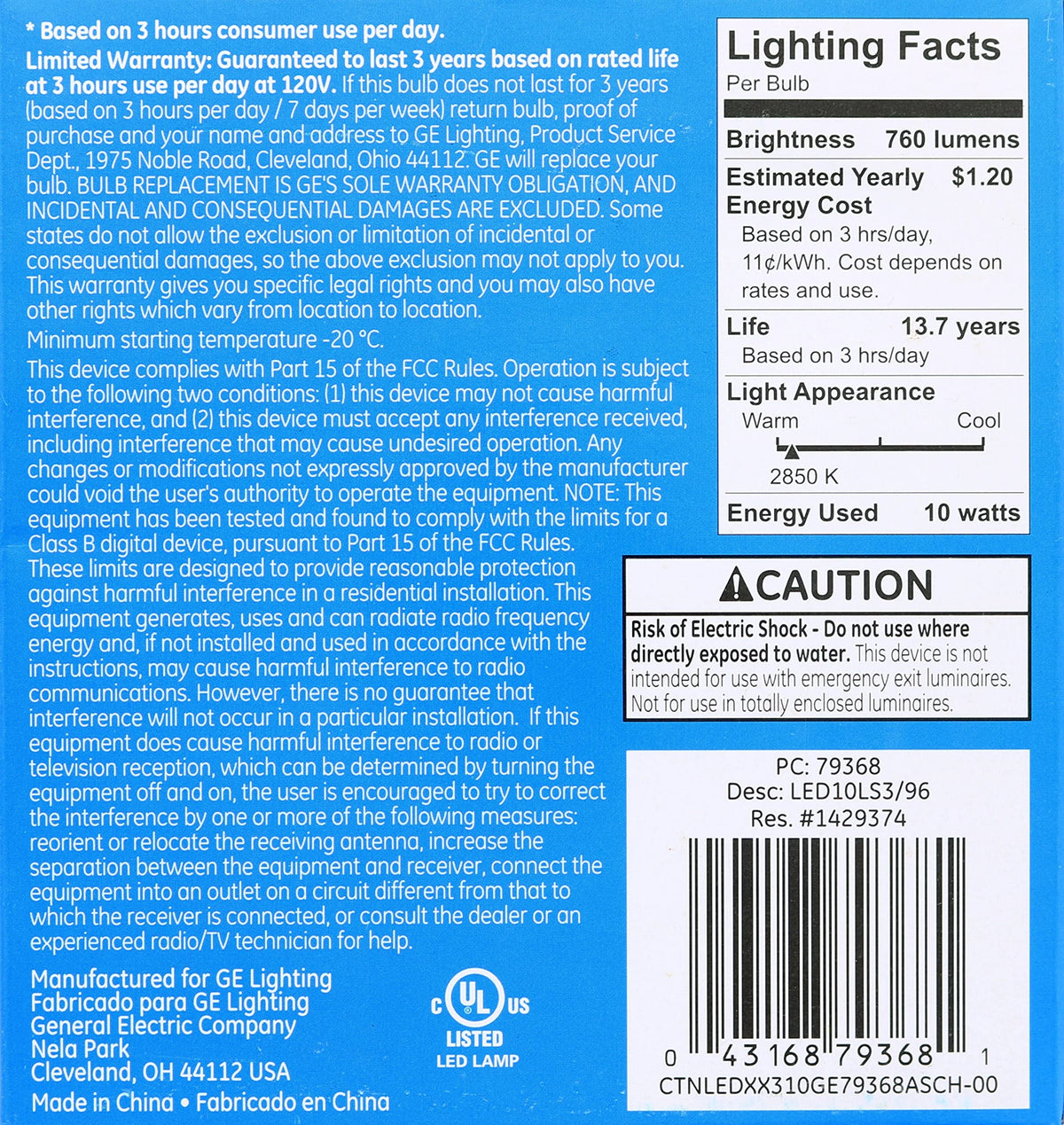 This product is an excellent choice for anyone looking to enhance their indoor lighting with energy-efficient solutions. Whether you're updating your home lighting or outfitting an office space, the GE LED10LS-3P/OT bulbs provide reliable performance and longevity. Enjoy the benefits of modern LED technology while contributing to energy savings and sustainability.
