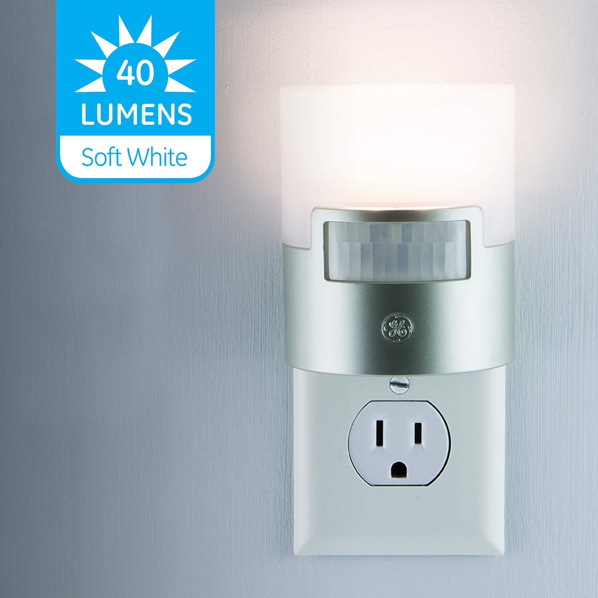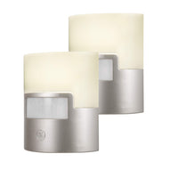 Ge Led Motion Sensor Night Light, 40 Lumens, Soft White, Energy Efficient, 2 Pack, Silver