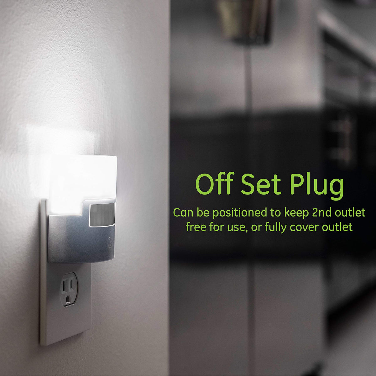 Q: Does the GE LED Motion Sensor Night Light leave the second outlet free?A: Yes, the compact design of the GE LED Motion Sensor Night Light plugs into any standard outlet without blocking the second outlet, allowing you to use both outlets in the room.