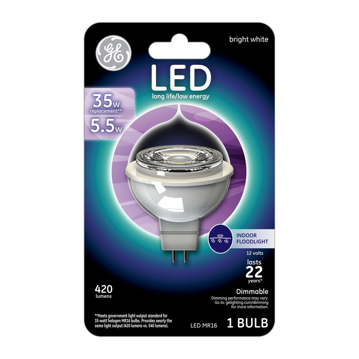 Q: How energy-efficient is the GE Lighting 45638 LED MR16 Accent Bulb?A: This bulb is a 35-Watt replacement that only uses 6 Watts, providing significant energy savings. It can save approximately $77 in energy costs compared to a traditional 35 Watt Halogen MR16 floodlight bulb over its lifespan.