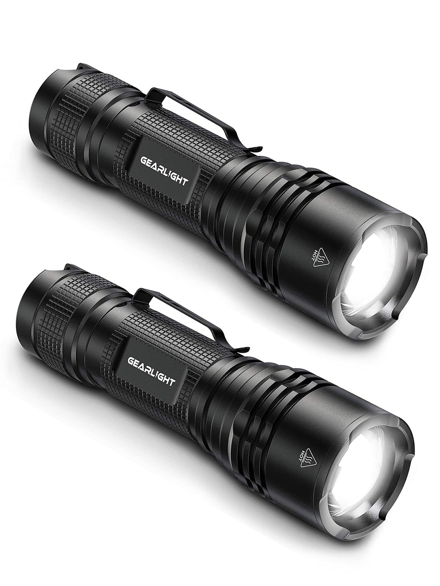 Q: What makes GearLight LED Tactical Flashlights suitable for outdoor use?A: The GearLight LED Tactical Flashlights are made from military-grade aluminum, making them durable and water-resistant. They can withstand extreme conditions, including drops from up to 10 feet, ensuring reliability during outdoor activities such as camping, hiking, and emergencies.