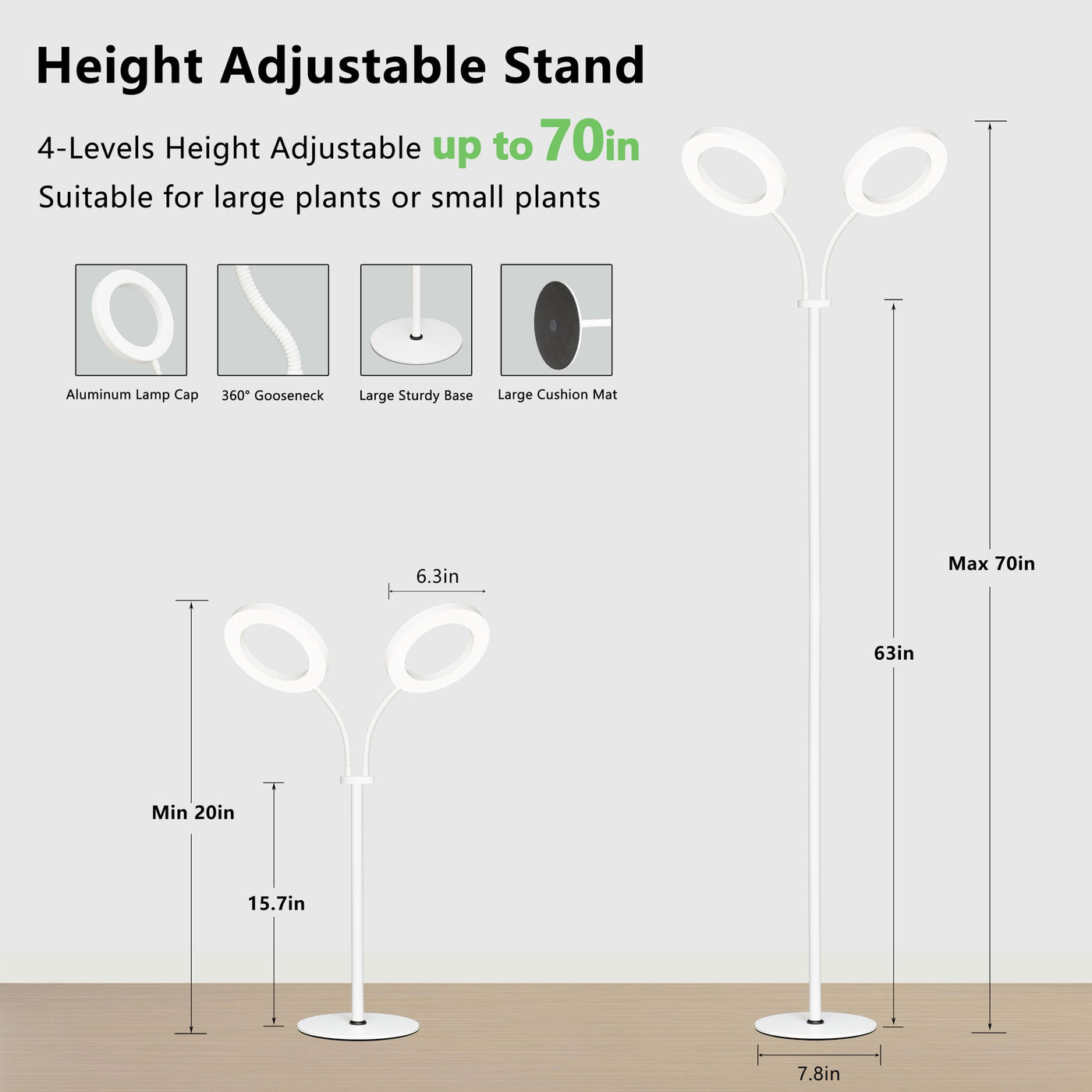 ?Upgraded Dual Head Grow Light? The grow light with 2 light heads make it cover a more extensive lighting area for your plants to help them grow happier. With a flexible 360