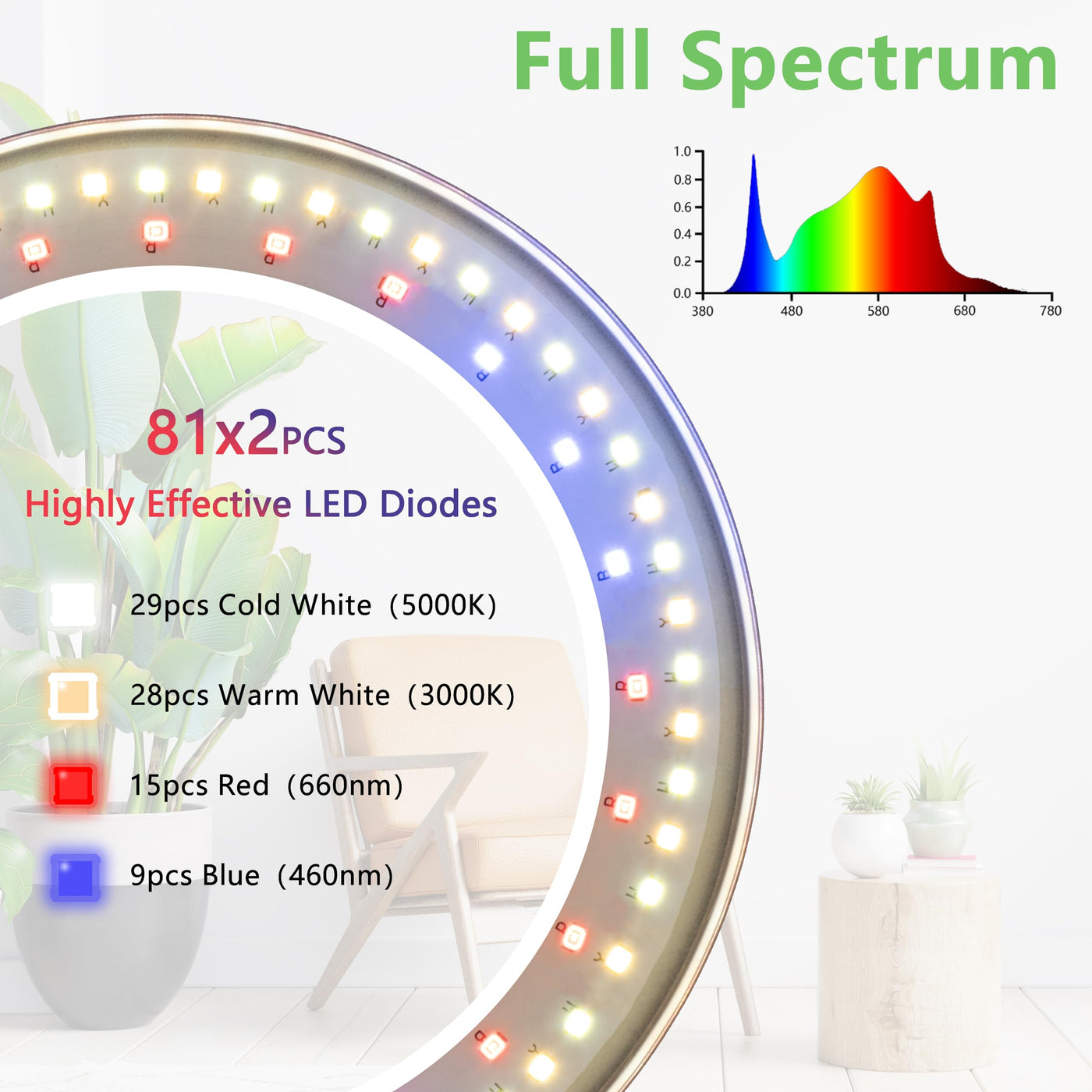 Geciliaoran Grow Light For Indoor Plants, Full Spectrum Led Halo Plant Lights With Stand, Floor Standing Growing Lamp With Adjus