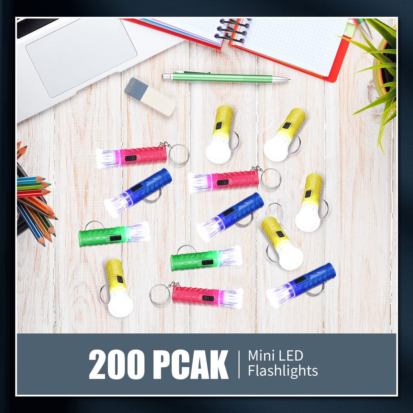 Geelin 200 Pcs Mini Flashlight Keychain 6 Colors Flashlight Small Led Torch Keyring Flashlights For Hiking Camping Party Favors