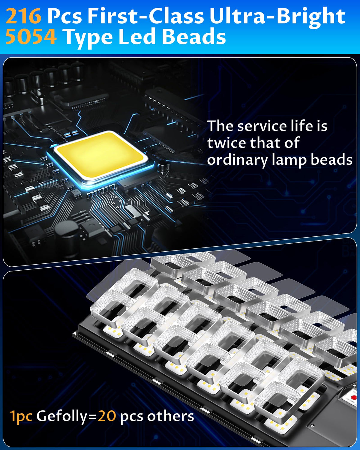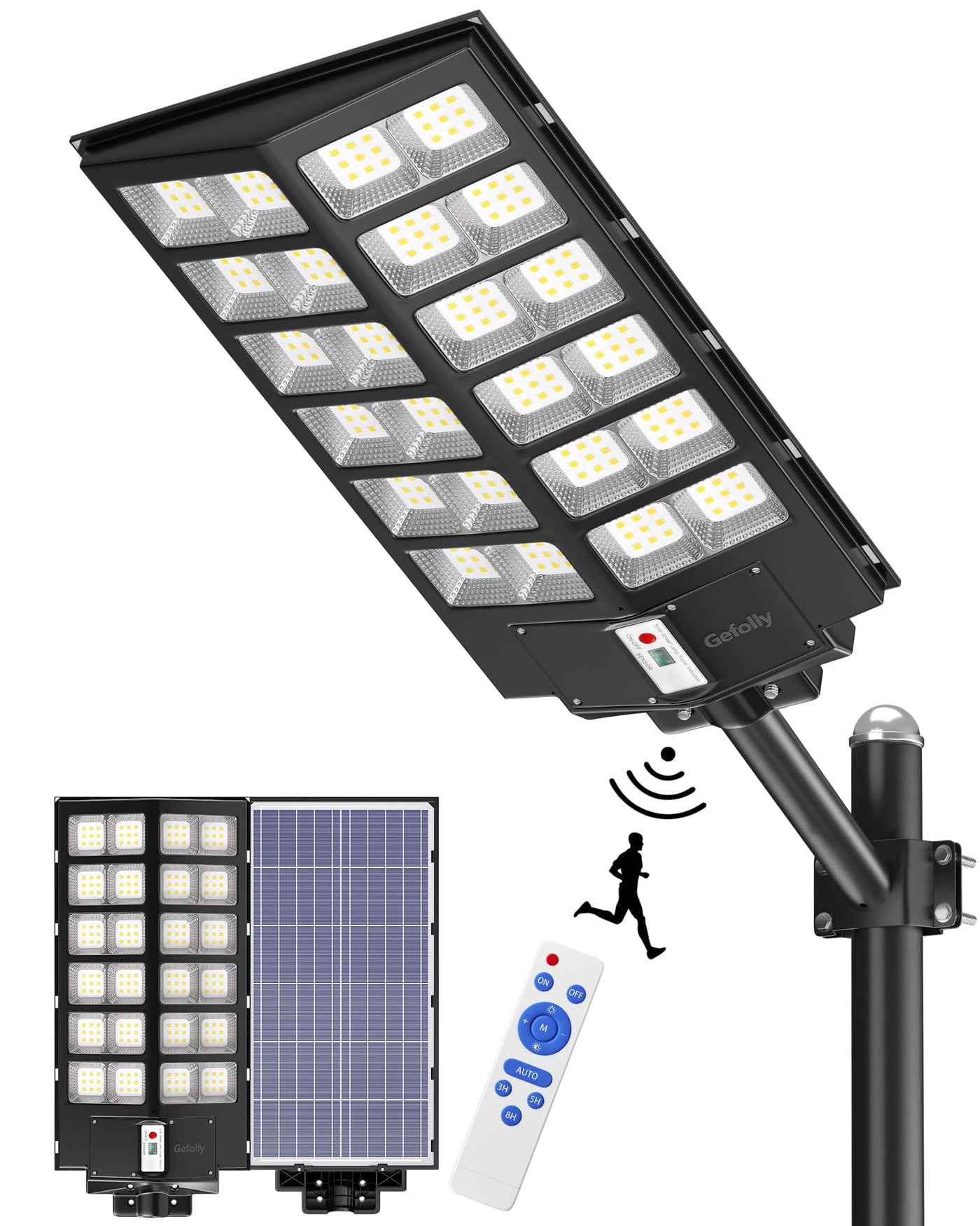 Gefolly SL-9800W Solar Street Lights Outdoor, 860000LM Commercial Parking Lot Light, 6500K Dusk to Dawn IP67 Security Flood Ligh