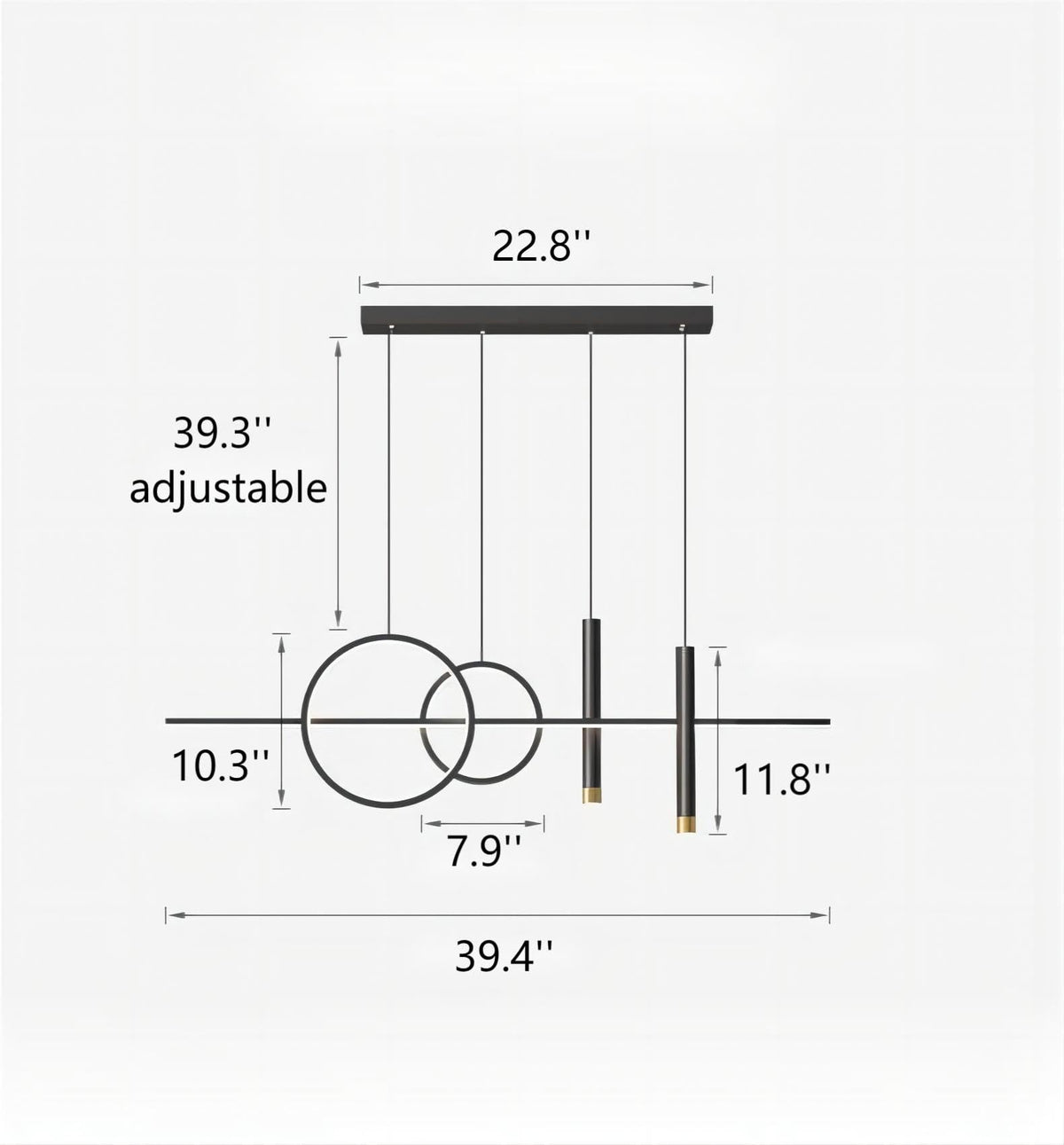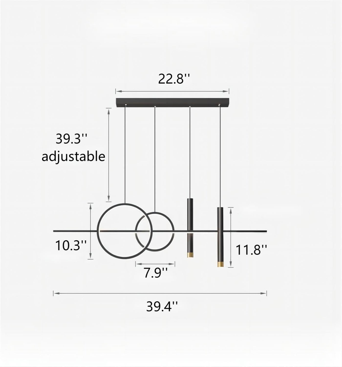 Adjustable Suspension: The 39.4-inch fixture features an adjustable height for flexible installation above kitchen islands or dining tables.
