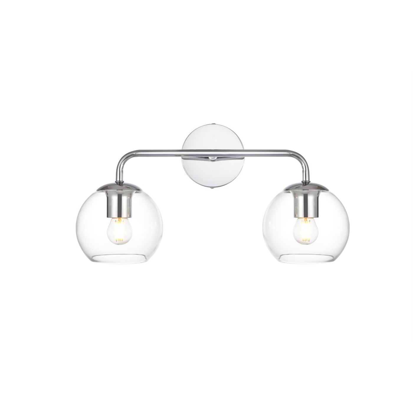 A modern twist on a traditional design, this vanity light is perfect for sprucing up your bathroom. Rated for use in damp locations, this iron fixture features a round backplate, curved arms, and orb accents. Completely versatile, you can place this wall light as an uplight or downlight. Rated for use in damp locations, this will work perfectly over a vanity in your bathroom.