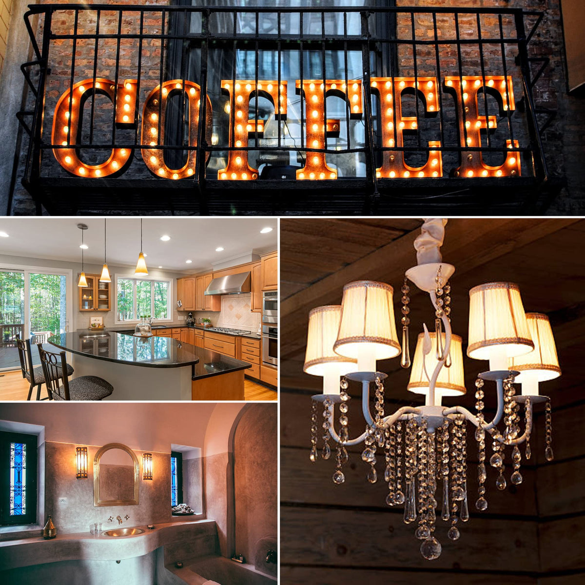Specification Base Type:E26 Working Voltage: AC 120V Color Temperature: 2700K (Warm White) Incandescent Equivalent: 10W Luminous Intensity: 100LM Beam Angle: 360 Degrees Size: Diameter 28mm*60mm / 1.1in * 2.38in Material: Metal and High-Strength Glass Life Span: Average 25000 Hours Lifespan,16 Years Life (5 Hours per Day)