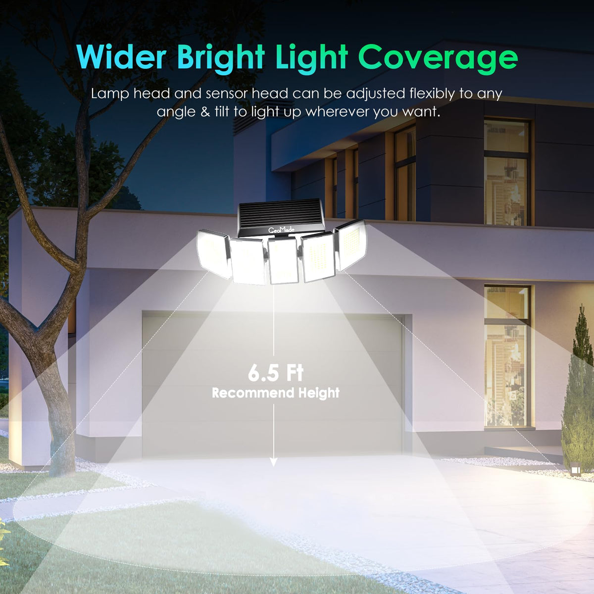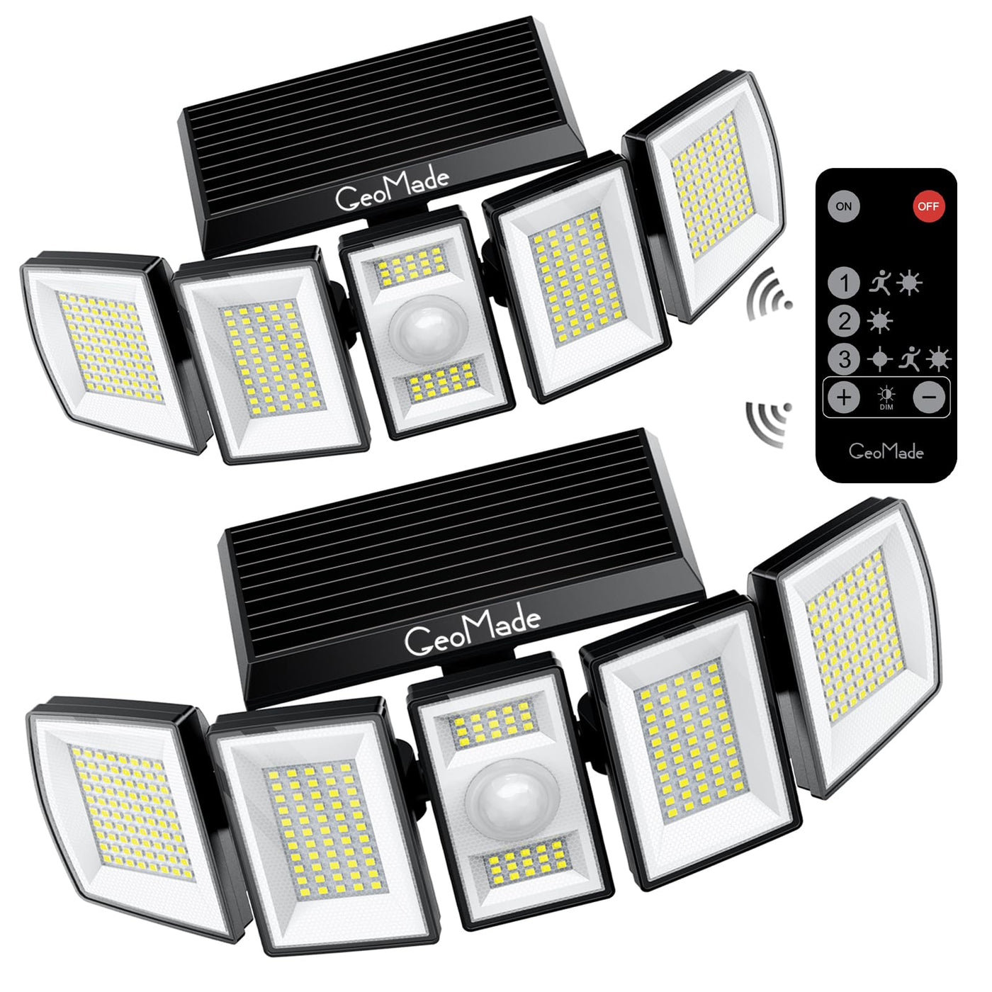 Geomade Solar Lights Outdoor, Solar Flood Light With Motion Sensor And Dusk To Dawn, Powered Spotlights Waterproof, Spot Lamp For Outside Yard House Patio Backyard Porch 300 Led Security 5 Head 2 Pack