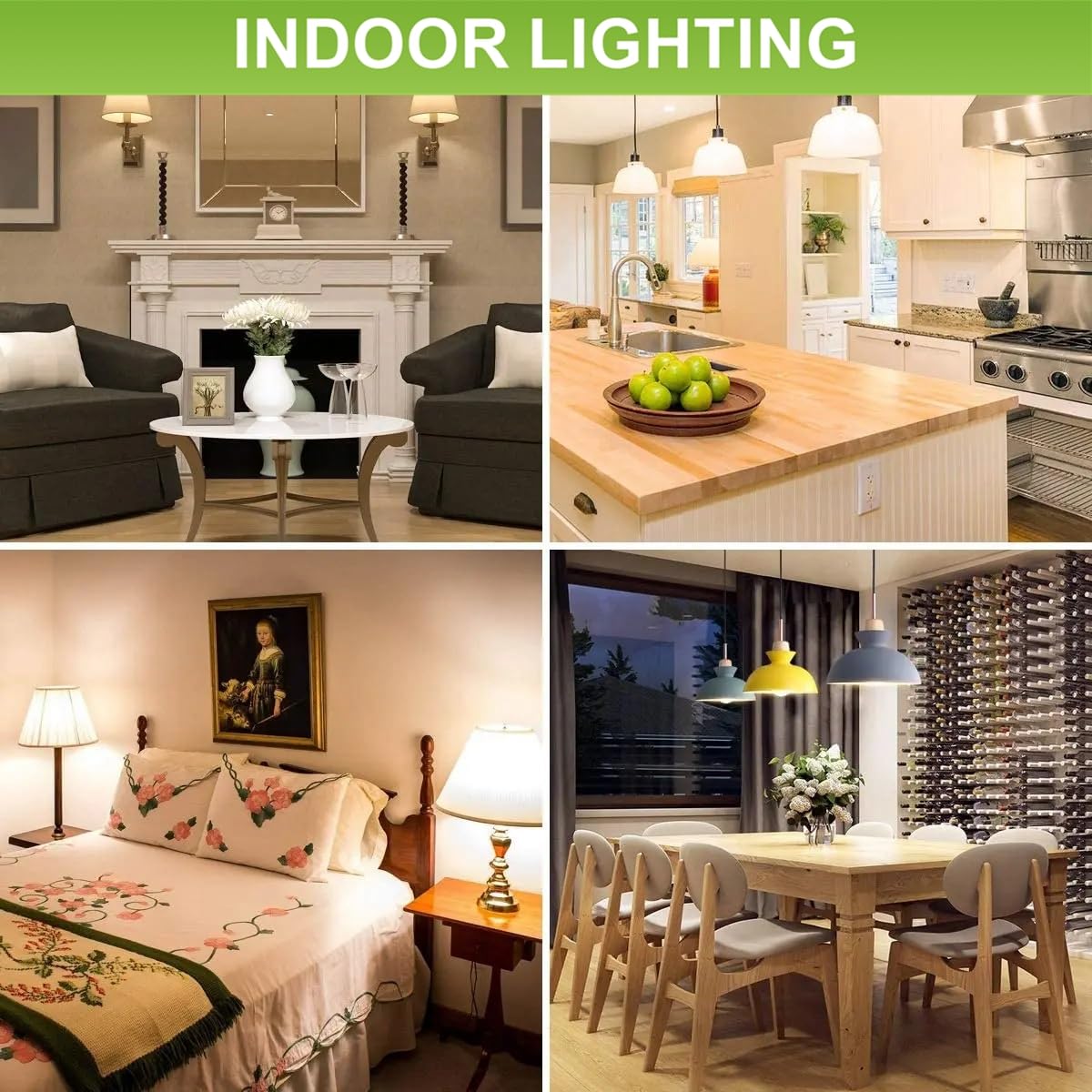 Q: What applications are suitable for the GEPLAD A15 LED light bulbs?A: These bulbs are versatile and can be used in various applications, including floor lamps, ceiling fans, chandeliers, kitchen fixtures, porch lighting, living rooms, sconces, and appliances, both indoors and outdoors.