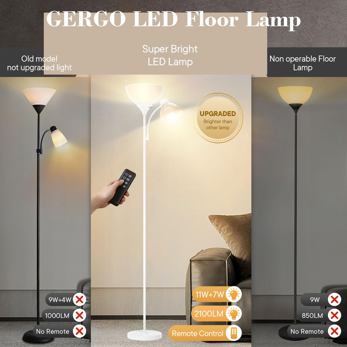 Gergo Led Floor Lamp, Super Bright 11W+7W 2100Lm Torchiere Floor Lamps For Living Room, Stepless Adjustable 3000K-6000K Temperat