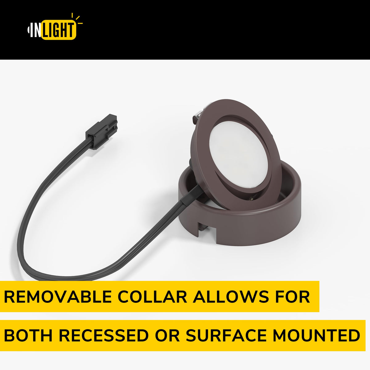Getinlight 2.75" Wide 4000K Swivel And Dimmable Wired Led Puck Lights Kit, Plug-In Or Hardwired Installation, Recessed Or Surface Mounted, Bronze Finished,In-0107-1S-Bz-40