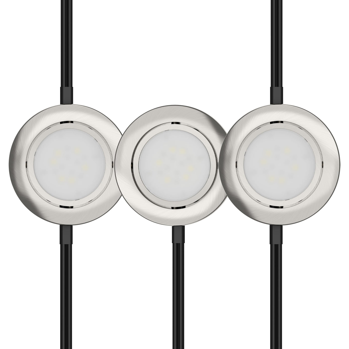 Getinlight 2.75" Wide 4000K Swivel And Dimmable Wired Led Puck Lights Kit, Plug-In Or Hardwired Installation, Recessed Or Surface Mounted, Brushed Nickel Finish, Set Of 3, In-0107-3-Sn-40
