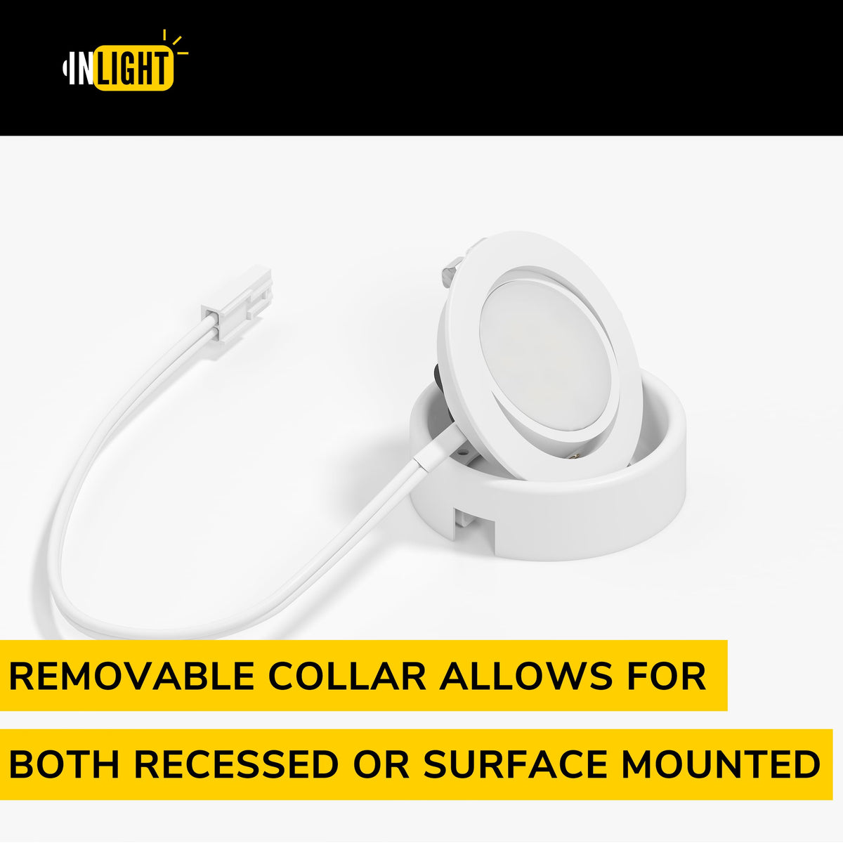 Getinlight 2.75" Wide 4000K Swivel And Dimmable Wired Led Puck Lights Kit, Plug-In Or Hardwired Installation, Recessed Or Surface Mounted, White Finished, In-0107-1S-40