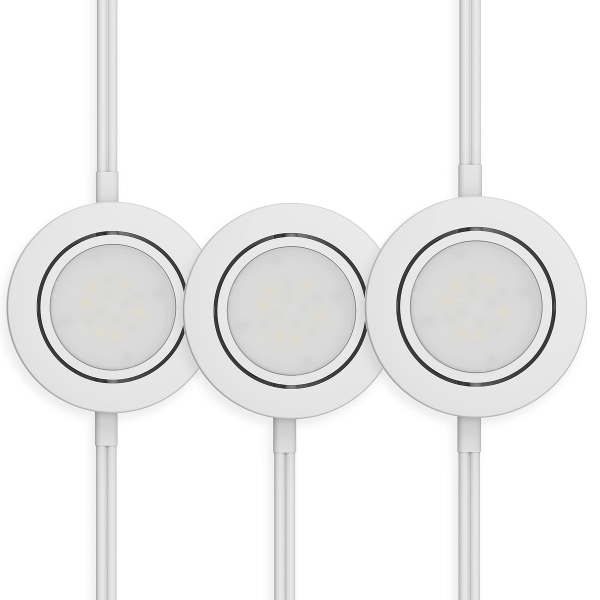 Getinlight 2.75" Wide 4000K Swivel And Dimmable Wired Led Puck Lights Kit, Plug-In Or Hardwired Installation, Recessed Or Surface Mounted, White Finished, Set Of 3, In-0107-3-40