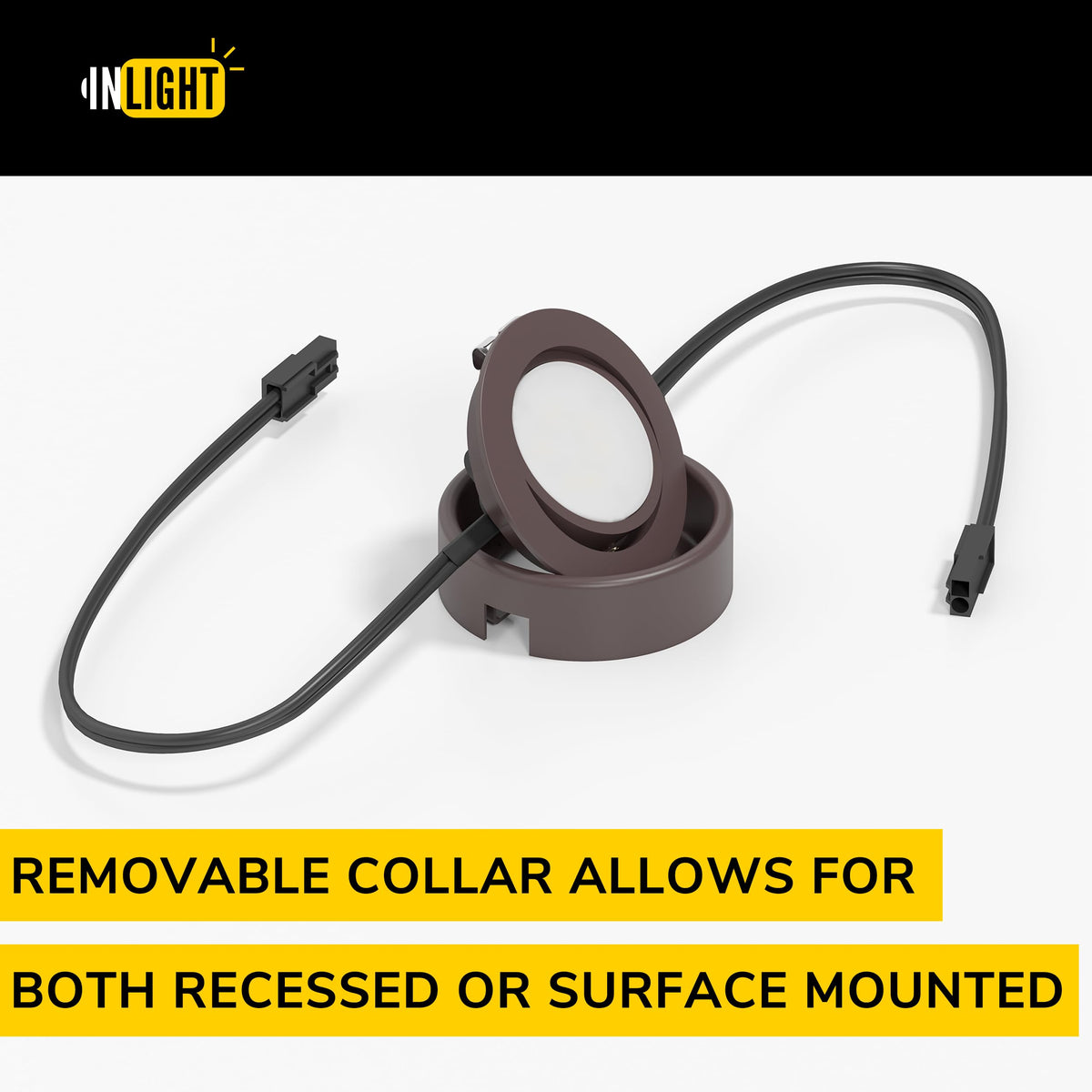 Getinlight Swivel Led Puck Light With Etl List, Recessed Or Surface Mount Design, Warm White 2700K, Bronze Finished, Power Cord