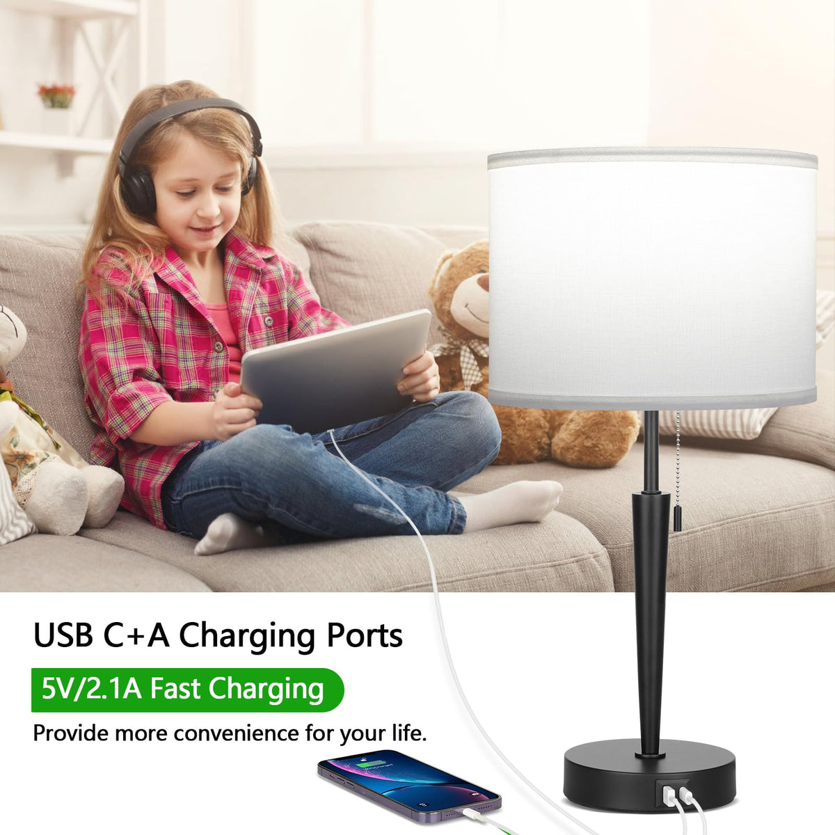 Set Of Two Big Bedside Lamps With Usb C Charging Ports Why Choose Ggoying Table Lamp? We Are More Professional, For We Only Do One Thing Focused On The Creation Of Table Lamps. We Carefully Cherish Every Lamp And Are Willing Our Table Lamp Can Bring More Warmth And Brightness To Every Home. Are You Still Looking For One Ideal Table Lamp? 1. Built With Dual Upgraded 5V/ 2.1A Usb C And Usb A Charging Ports, Provide More Convenience For You To Charge Your Devices, Such As Phones, Ipad, Kindles, Headsets, Diffusers, Speakers, Or Other Electronics. 2. Especially Equipped With 5000K A19 Led Bulbs, Show The Lamp'S Beauty And Classic More Completely. 3. Smooth Pull Chain Switch Is Easy For You To Control. 4. Ideal Size Is Very Compatible With Any Place You Want To Place. 5. Superior Material And Exquisite Manufacture Make The Lamp More Advanced And Durable. Bulb Parameters: Type: A19 Wattage: 11W Voltage: 120V Cct: 5000K Lumens: 1100Lumens Package Include: 2 X Table Lamp 2 X Lampshade 4 X Metal Ring 2 X Led Bulbs 1 X User Manual