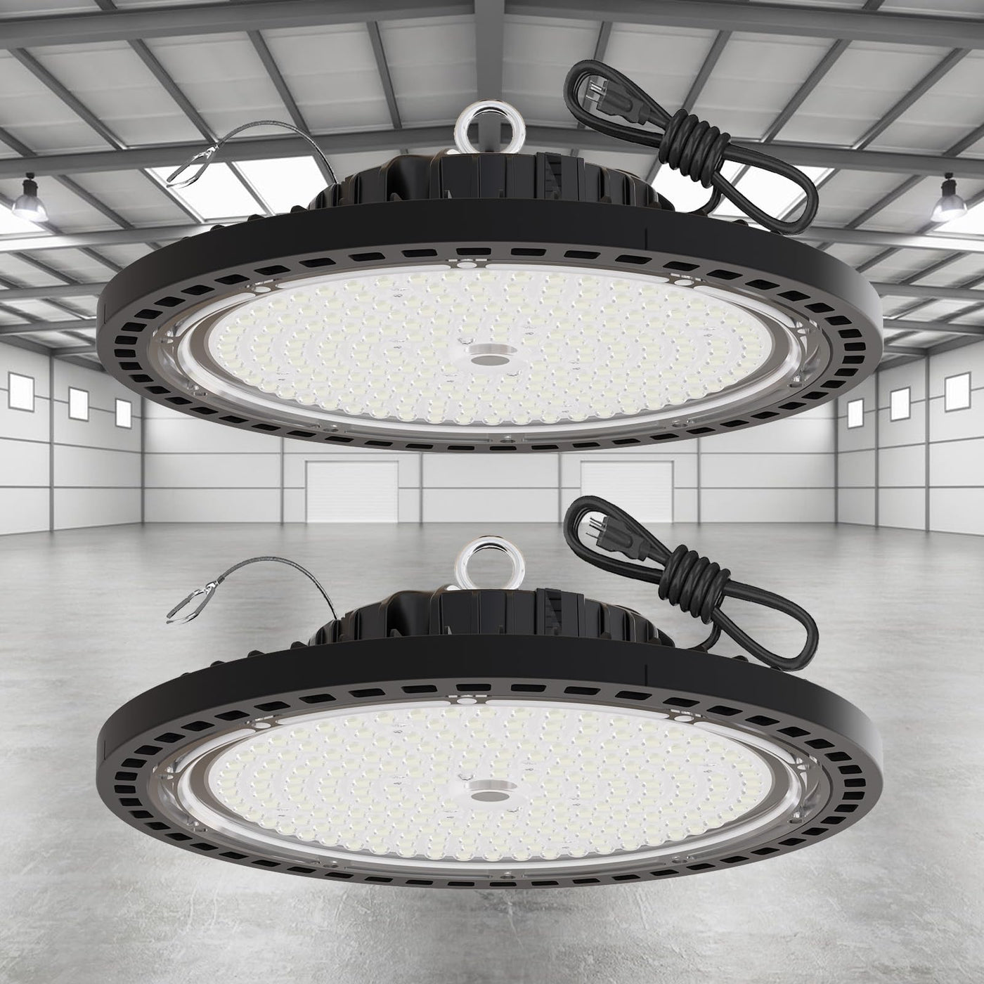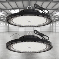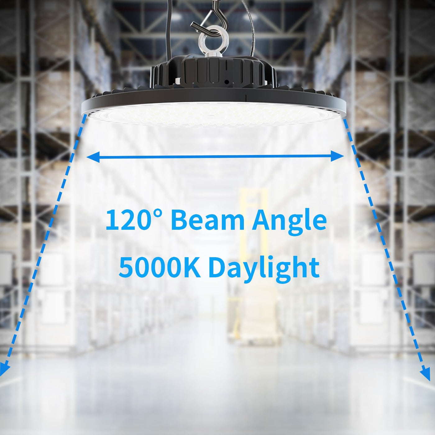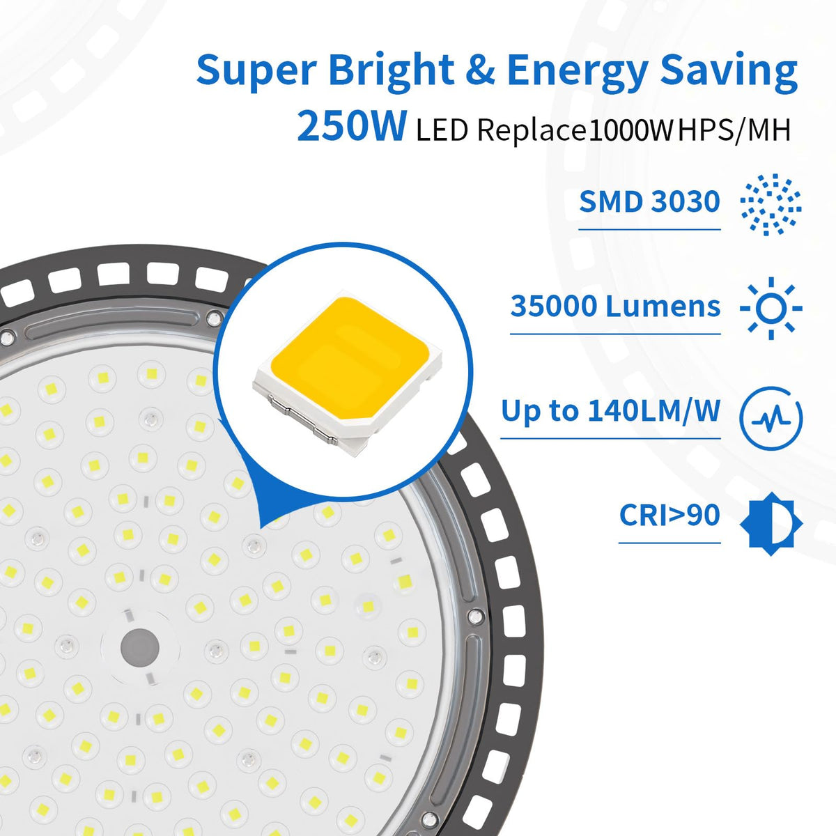 Super Bright Illumination: Delivering a powerful 35,000 lumens with 250W, these UFO-style LED lights provide exceptional brightness for large indoor spaces, making them ideal for warehouses, factories, and other worksite lighting needs.