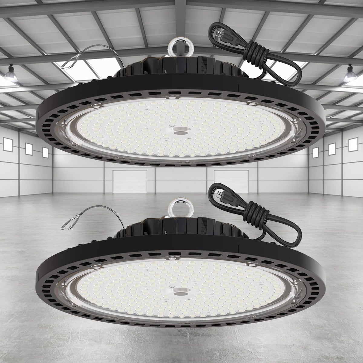 These 250W UFO-style high bay lights are designed for large spaces that require high-intensity, long-lasting lighting. With a total output of 35,000 lumens, these lights are perfect for warehouses, factories, gyms, and large commercial areas.