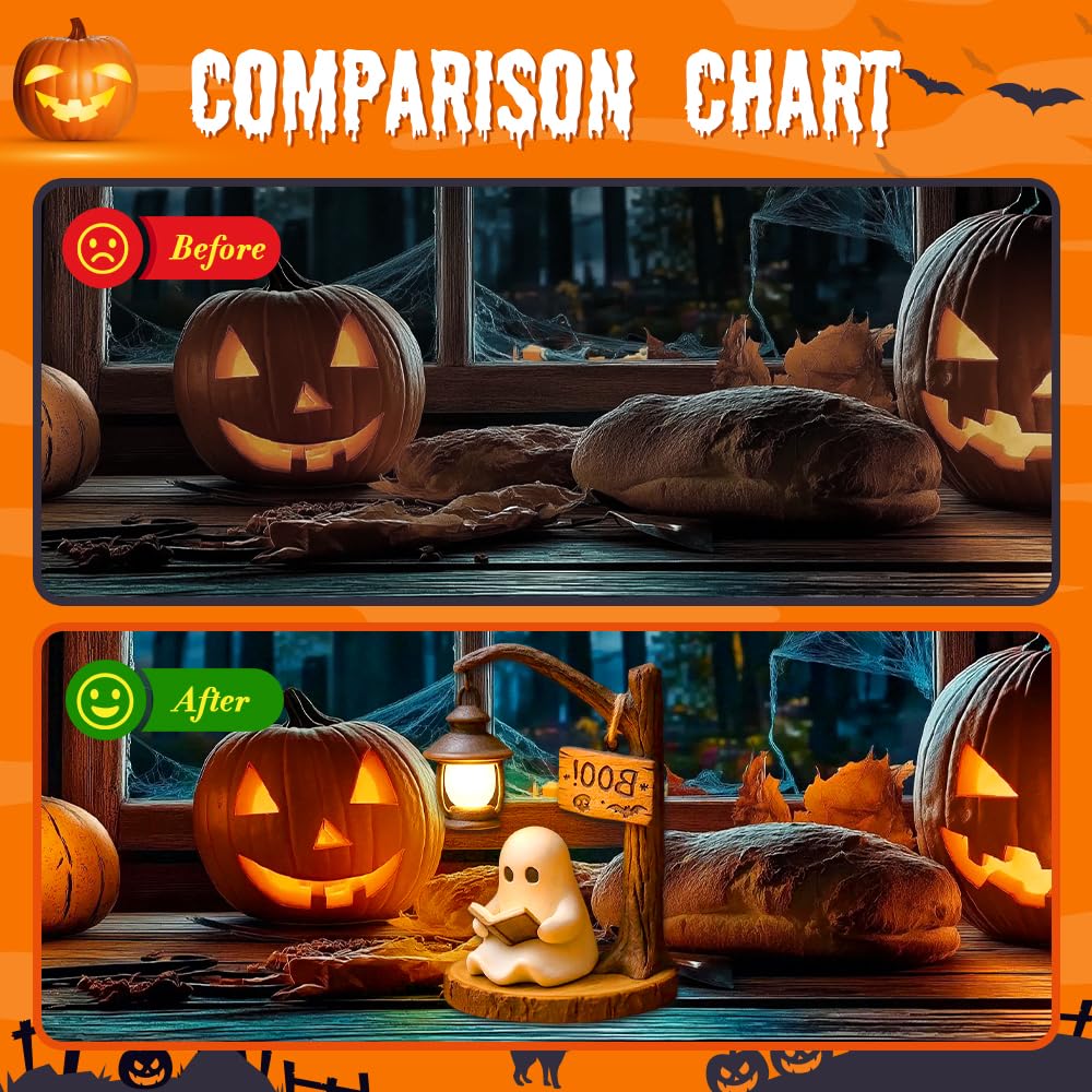 Ghost Reading Book Lamp, Cute 3D LED Night Light with Warm Glow - Resin Ghost Lamp for Bedroom, Desk Decor, Spooky Cute Halloween Gift Idea Ghost Reading Book Lamp, Cute 3D Pumpkin Ghost Coffee LED Night Light with Warm Glow - Resin Ghost Lamp for Bedroom, Desk Decor, Spooky Cute Halloween Gift Idea