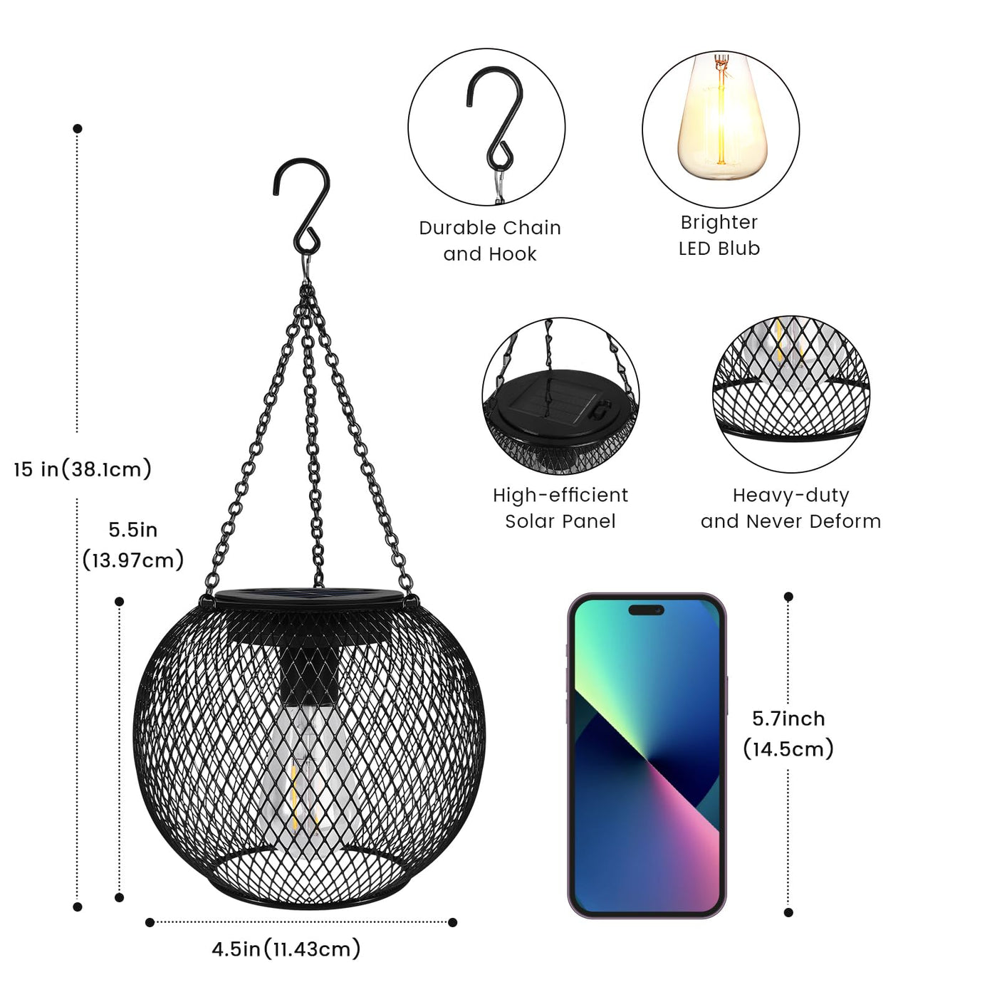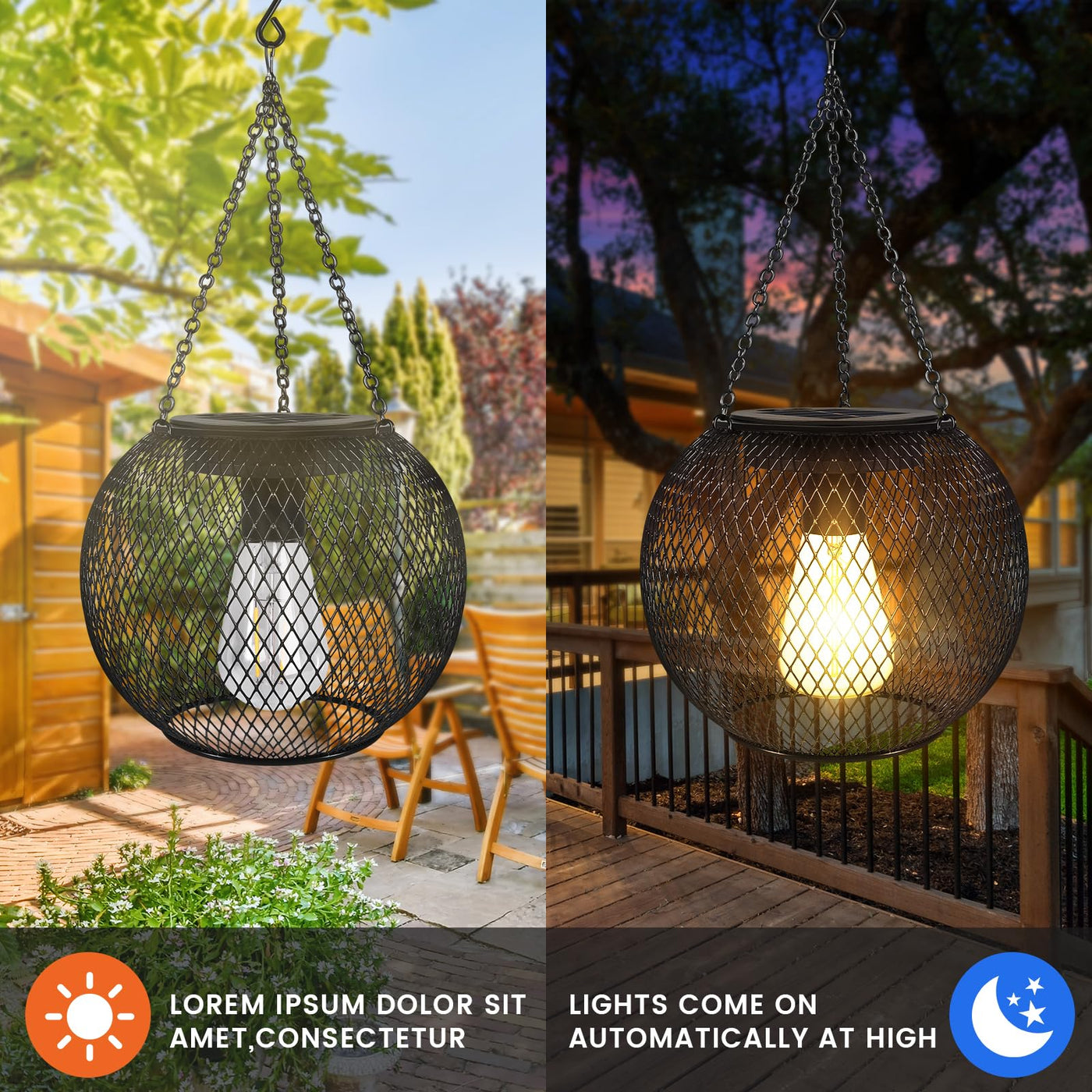 hanging solar lights for outside Constant warm lighting creates a great impression of the outdoor living area at night The beautiful light reflections are enough to mesmerise you solar hanging lanterns outdoor waterproof for garden yard christmas Automatic charging during the day and lights turn on automatically when entering the night Perfect for garden decorations, beautiful light to brighten up every corner of your outdoor living. solar hanging lanterns outdoor waterproof for garden yard christmas Made of high-quality metal, it is resistant to all kinds of weathe