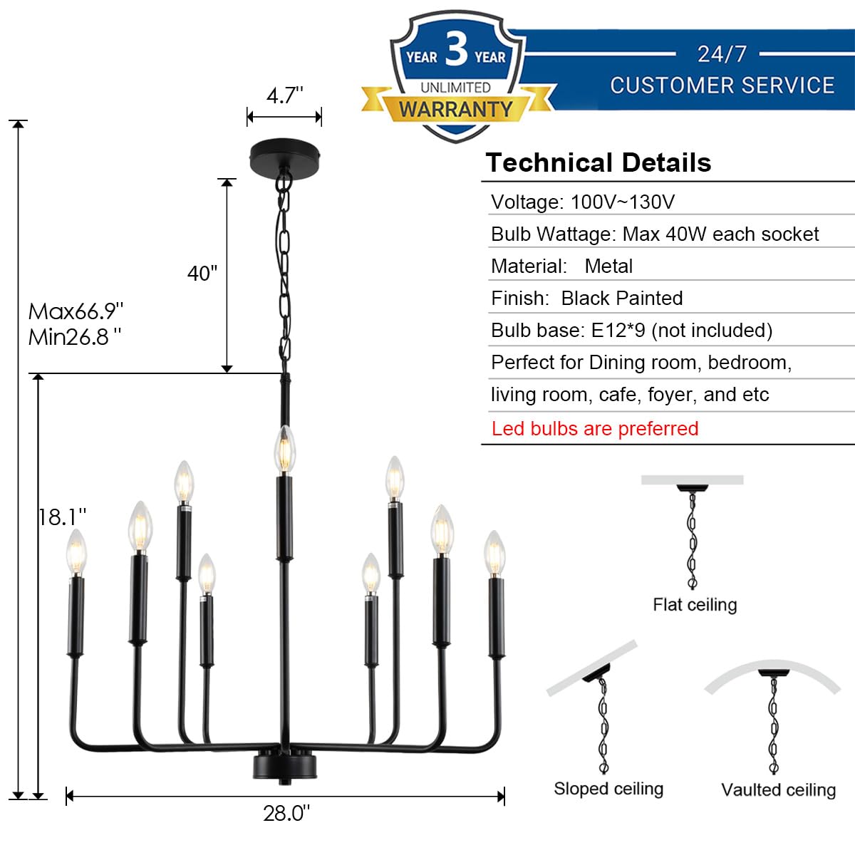 Gifarich Black Chandeliers For Dining Room Light Fixture Over Table (Gold, 12 - Lights)