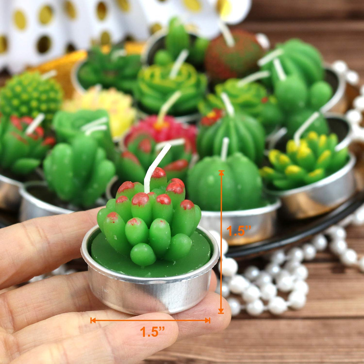 Spruce up your decor with our GIFTEXPRESS Cactus Succulent Tealight Candles! This set includes 18 unique candles, each charmingly styled for a diverse collection perfect for home or office display. Measuring approximately 1.5 inches in diameter and height, they fit seamlessly into any tealight holder. Enjoy extended burn times of 4-5 hours for the entire candle and 30 minutes for the succulent part, providing a delightful glow. Crafted from premium paraffin wax, these candles offer a clean burn with no black smoke, and are scented, flameless, and smokeless. Whether it's for Fiesta birthdays, weddings, Valentine's Day, or simply as home decor, these candles add a refreshing accent to any space.