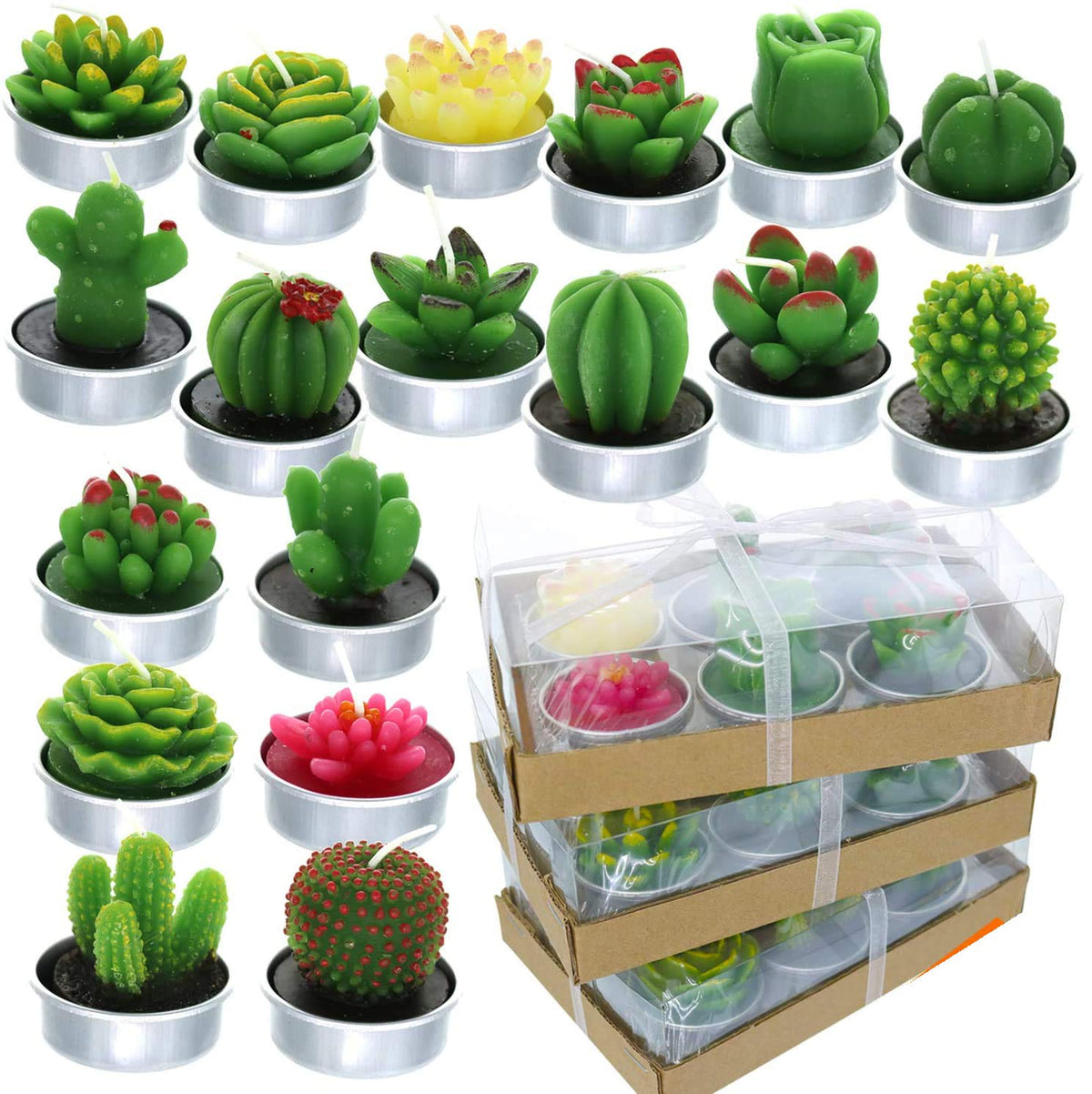 Giftexpress 18 Pcs Succulent Cactus Candles No Repeat Style, Delicate Smokeless Scented Tealight Candles For Home Décor, Spa, Wedding, Valentine'S Day, Birthday Gift, Anniversary Celebration