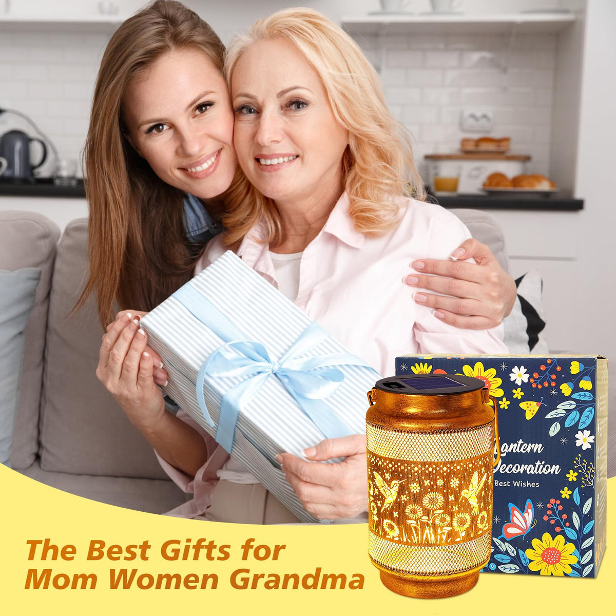 Gifts For Mom, Mom Gift Solar Lanterns Outdoor, Mother Birthday Gift From Daughter Son, Metal Solar Hanging Hummingbird Lights W