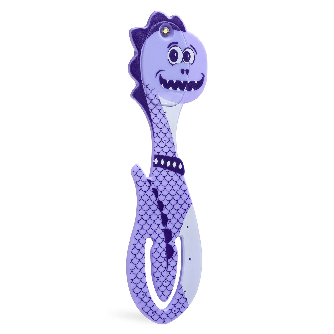 Gifts for Readers & Writers Children Flexilight Pal 2 in 1 LED Book Light is flexible and positionable, able to bend forwards at any angle, so you can position the quality led and its whopping 8 lumens of light, anywhere you want it. This booklight is so thin that when youre done reading just pop it into your book and use it as a bookmark. Perfect for reading snugs and bedtime stories. The ultra bright permanent led light helps you and the kids enjoy night-time reading in a cosy environment. With its innovative design and versatility, this is the perfect Christmas or birthday gift. Size: 14 cm by 3 cm. Comes in dinosaur purple style.