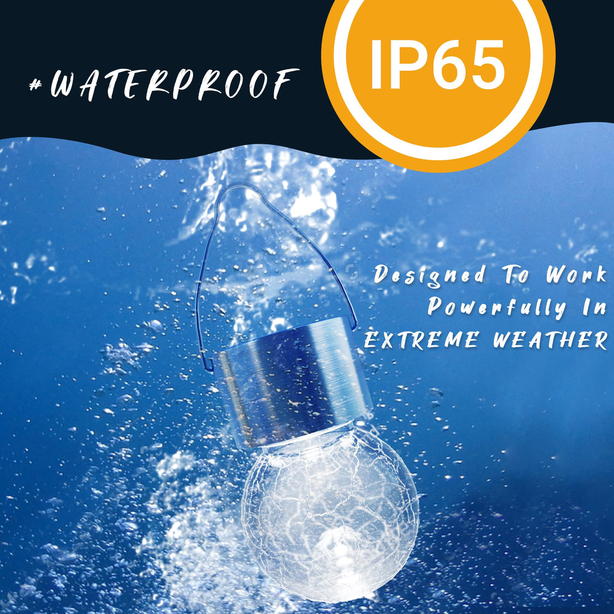 Q: What materials are used in the construction of these solar lights?A: The GIGALUMI solar lights feature a crackle glass globe and a sturdy stainless-steel hook, ensuring durability and a premium look.
