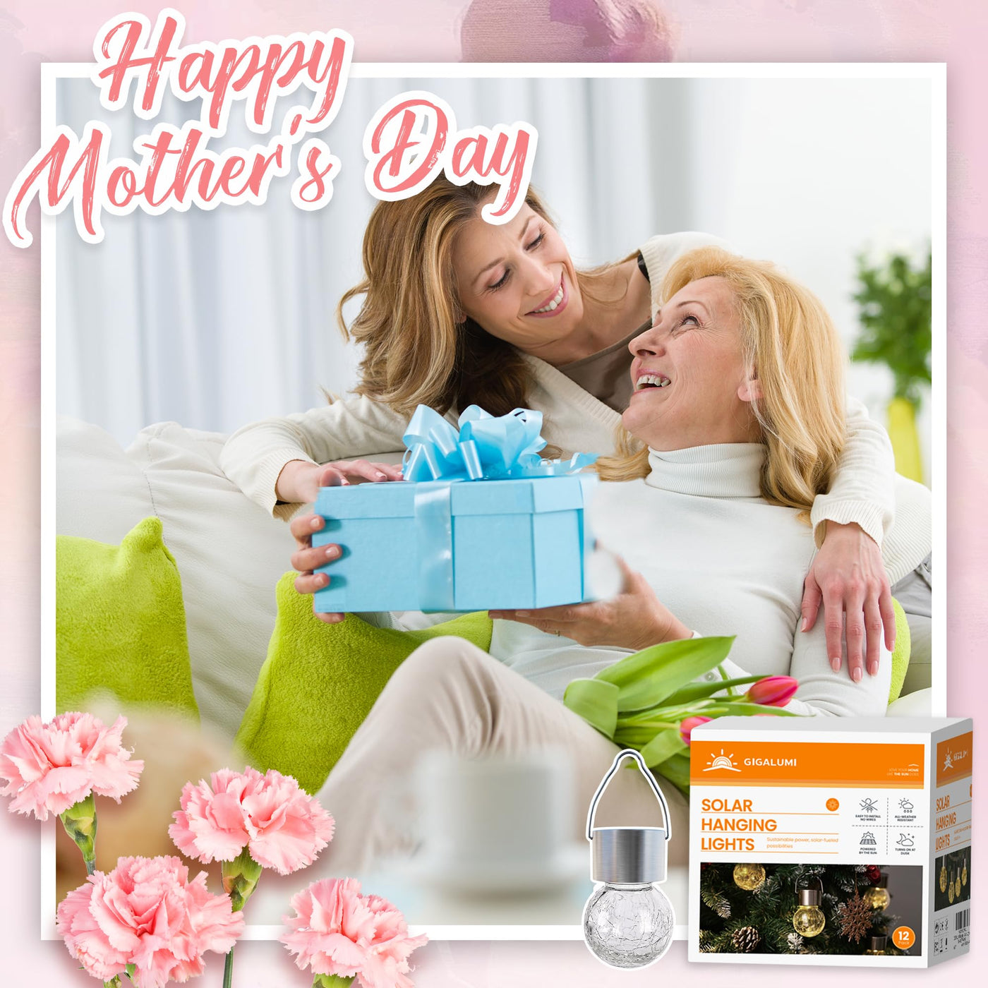 ?12 Pack Decorative Solar Lights?Pack of 12 with cold white led lights is perfect for indoor and outdoor decoration. Ideal for home, balcony, fence, driveway, Christmas tree decoration. | ?Premium Material?Featuring a shimmering crackle glass globe, a sturdy stainless-steel hook and newest upgrade solar panel, adding a superior light effect to your garden. | ?Weatherproof?The hanging solar lanterns are weatherproof and designed to withstand sunny days, rainy nights, and small snowy days, suitable for garden | ?Brand Quality Assurance?GIGALUMI was founded for providing high-quality, and exquisite-design solar light fixtures. Equipped with advanced technology and excellent products, we are specialized in incorporating nature with people, making full use of energy from nature to illustrate your life with GIGALUMI. | ?Energy Saving?Solar globe lights are powered by the sun. They are automatically charged during the day and turned on automatically at night. Charge for 6-8 hours during the day and provide 8-10 hours of lighting at night. | ?Perfect after-sales service?We are listening to the voice of consumers constantly. Please contact us if you have any questions with our solar hanging lights, we provide a six-month after-sales service.