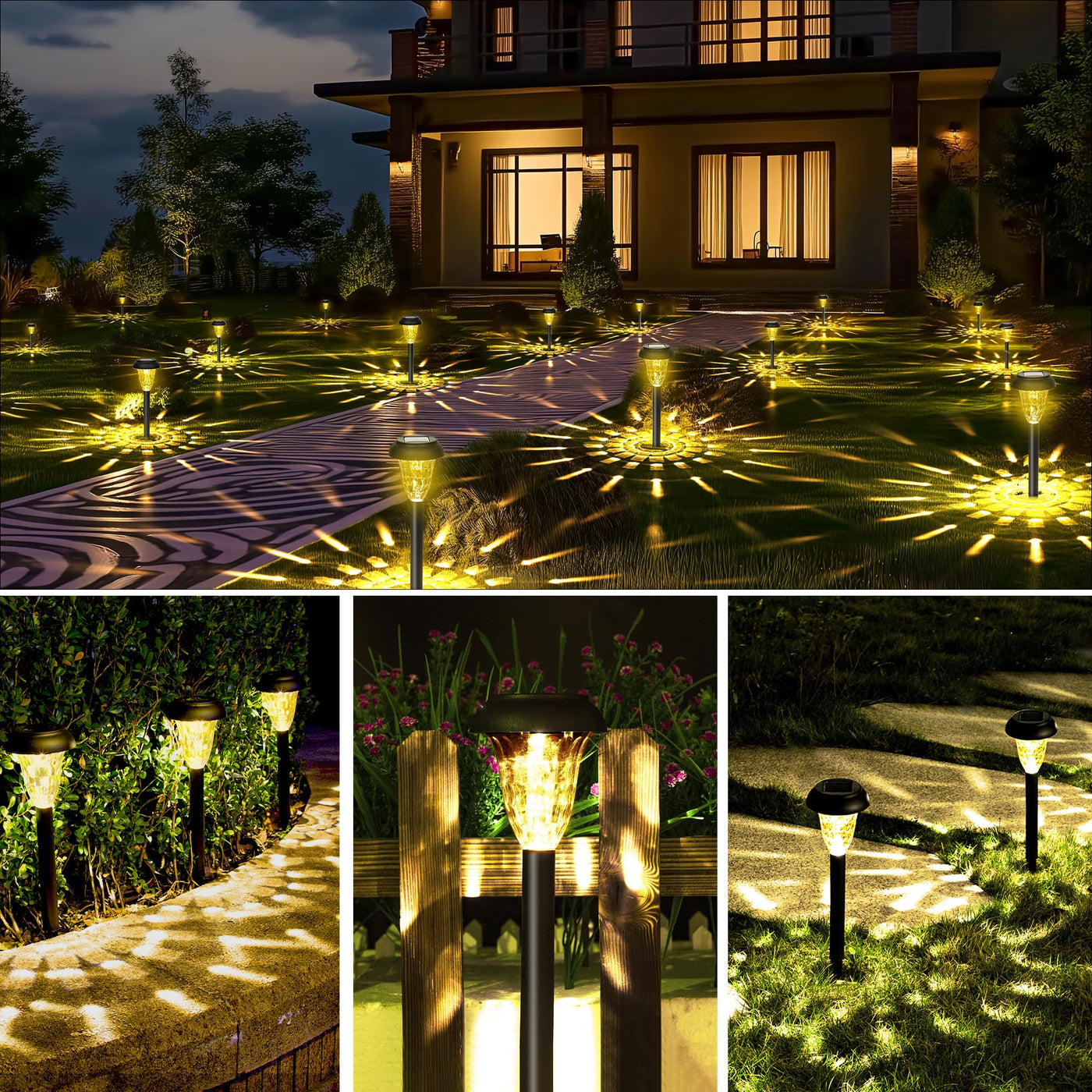Gigalumi 16 Pack Solar Lights Outdoor Waterproof, Warm White Pathway Light Solar Powered, Landscape Lighting, Garden Lights For