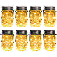 All-In-One Mason Jar Solar Lights: 8-Pack(8 Mason Jars&6 Lid Lights&8 Hangers). Standard 16 Oz Regular Mouth Mason Jars, Dimension: 3.2 Dia. X 5.3H, Each With 30 Leds | Multiple Uses: Great Gift Idea. 2 Ways To Install These Waterproof Solar Outdoor Lights. Hang These Solar Light Lanterns In Places That Can Get Enough Sunlight During The Daytime, Or Place These Solar Lanterns Outdoor On The Ground Or Patio Tables As Mood Lamps | Solar-Powered Mason Jar Lid Lights: No Wiring. No Electricity Bill. These Hanging Solar Lights Outdoor Waterproof Store Energy From Sun Rays During The Daytime And Automatically Turn On At Night. Illuminate For 8-10 Hours With A Full Charge | The Best Outdoor Decorative Lights: These Solar Outdoor Lights Are Combinations Of Glass Mason Jars And Solar Fairy Light Lids. Ideal For Outdoor Decorations, Such As Garden Decor, Patio Decor, Yard Decor, And Balcony Decor. Compatible With Tables, Fences, Walkways, Lawns, And Trees | Weatherproof And Guarantee: Designed To Withstand Sunny Days, Rainy Nights, And Small Snowy Days. With A 90-Day Product Warranty, If You Have Any Questions About These Solar Decorative Lights Outdoors, Please Contact Us, We Would Be More Than Happy To Assist