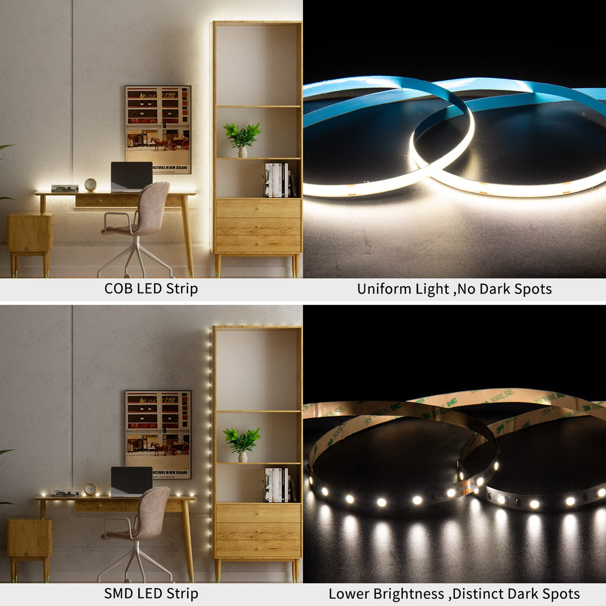 Q: What is the wattage and length of the Gingsow COB LED Strip?A: The Gingsow COB LED Strip has a wattage of 36W and a length of 16.4ft, providing efficient lighting for various applications.