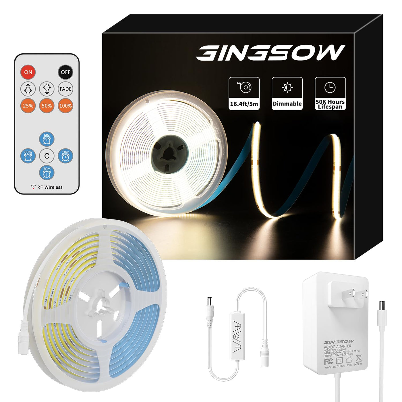 Gingsow Cob Led Strip 12V 16.4Ft 2400Leds Natural White 4000K,Cri90+ Dimmable Super Bright Flexible Led Tape Lights With Rf Dimm