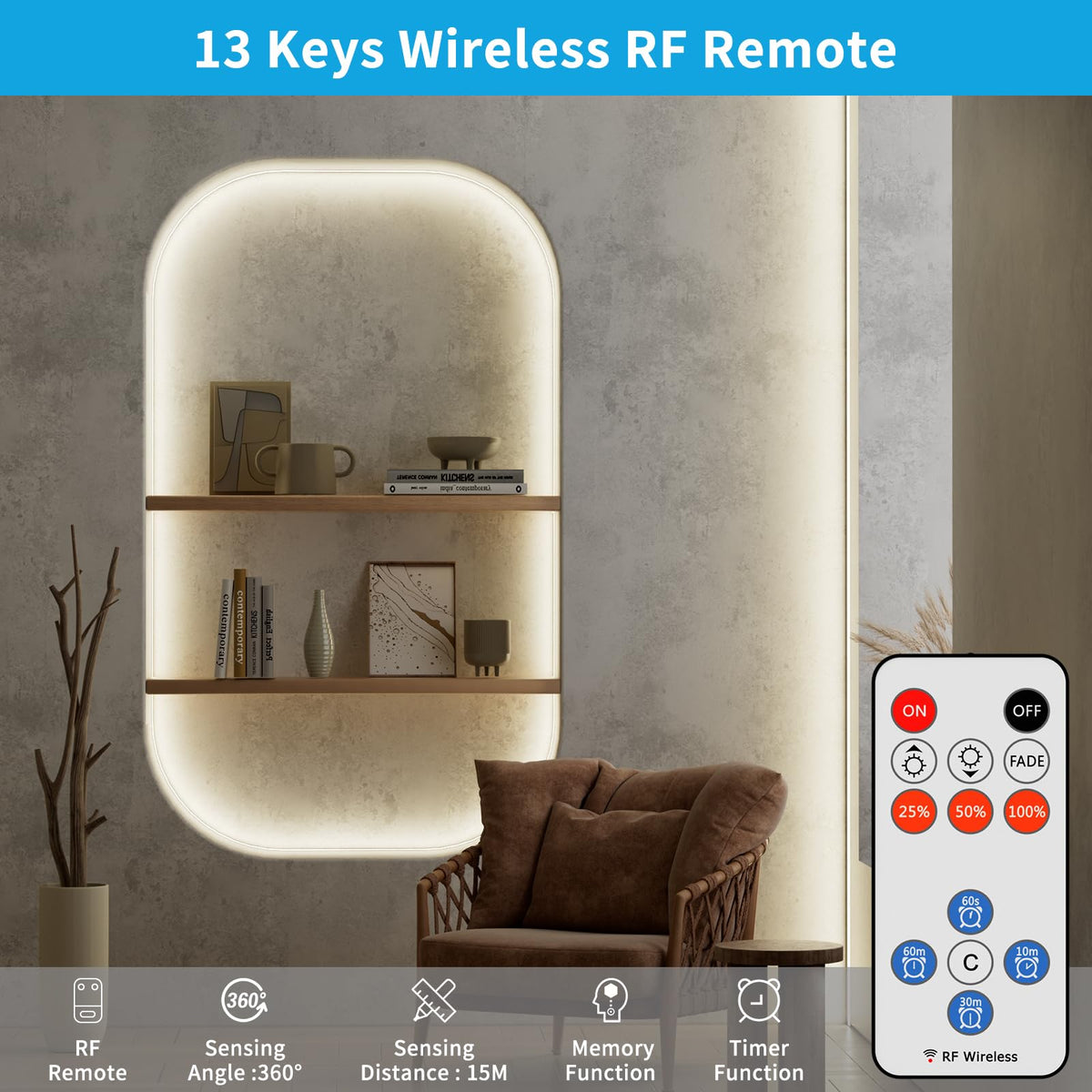 Q: How does the RF remote control work with the LED Strip?A: The RF remote control allows you to operate the Gingsow LED Strip from up to 15 meters away, featuring 13 keys for brightness adjustment and timer settings.
