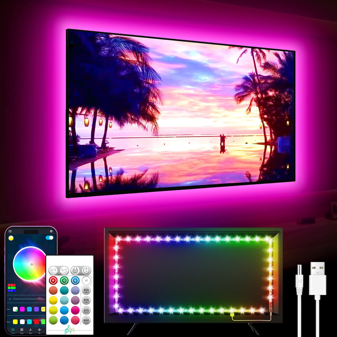 Gipoyent Tv Light Strip, Music Sync Led Tv Backlight, For 55-80 Inch Tv, Led Tv Light With Bluetooth Function - Rgb Color Changing Light Strip For Home Theater (19.6Ft)