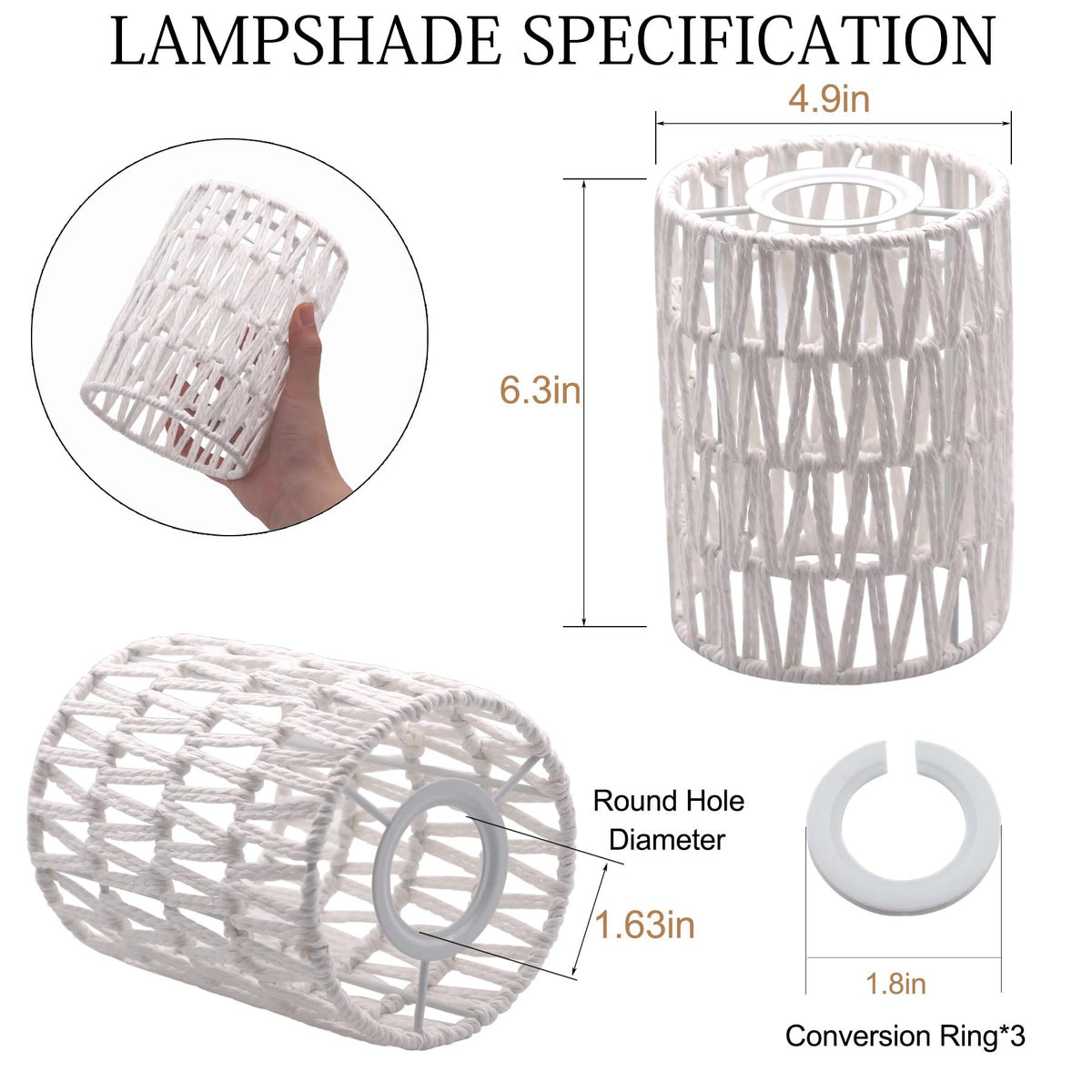Giutna 3-Pack Boho Rattan Lamp Shades, 6.3''H X 4.9''D Woven Small Lamp Shade Replacement, 1.63In Fitter Farmhouse Pendant Light