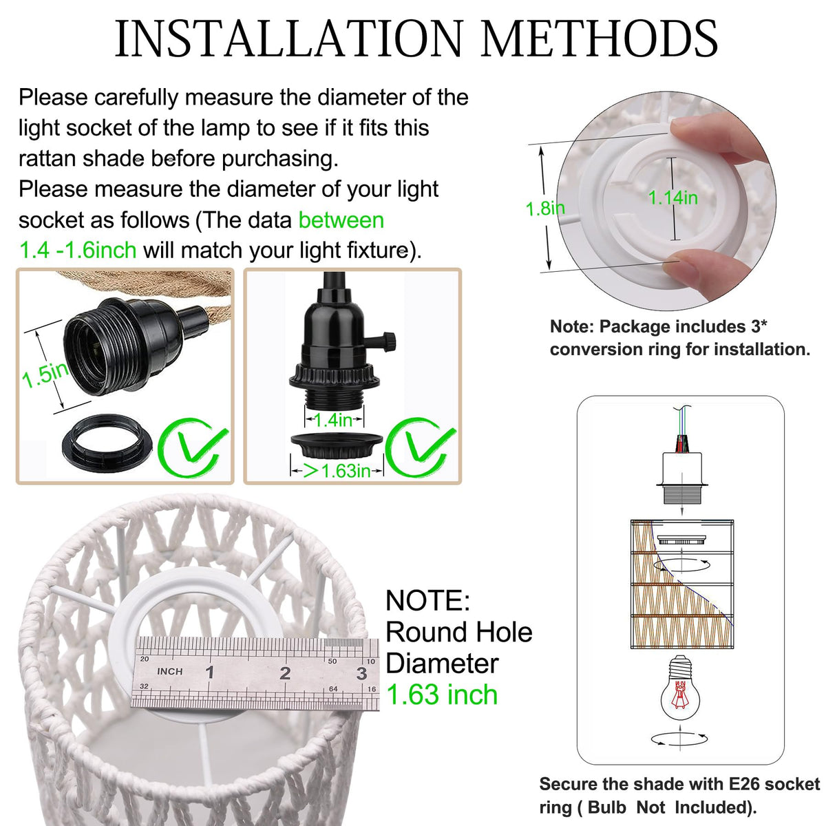 Q: What type of decor do these lamp shades complement?A: These Boho rattan lamp shades are ideal for a range of decor styles, including coastal, bohemian, nautical, rustic, and vintage, enhancing the charm of any room.