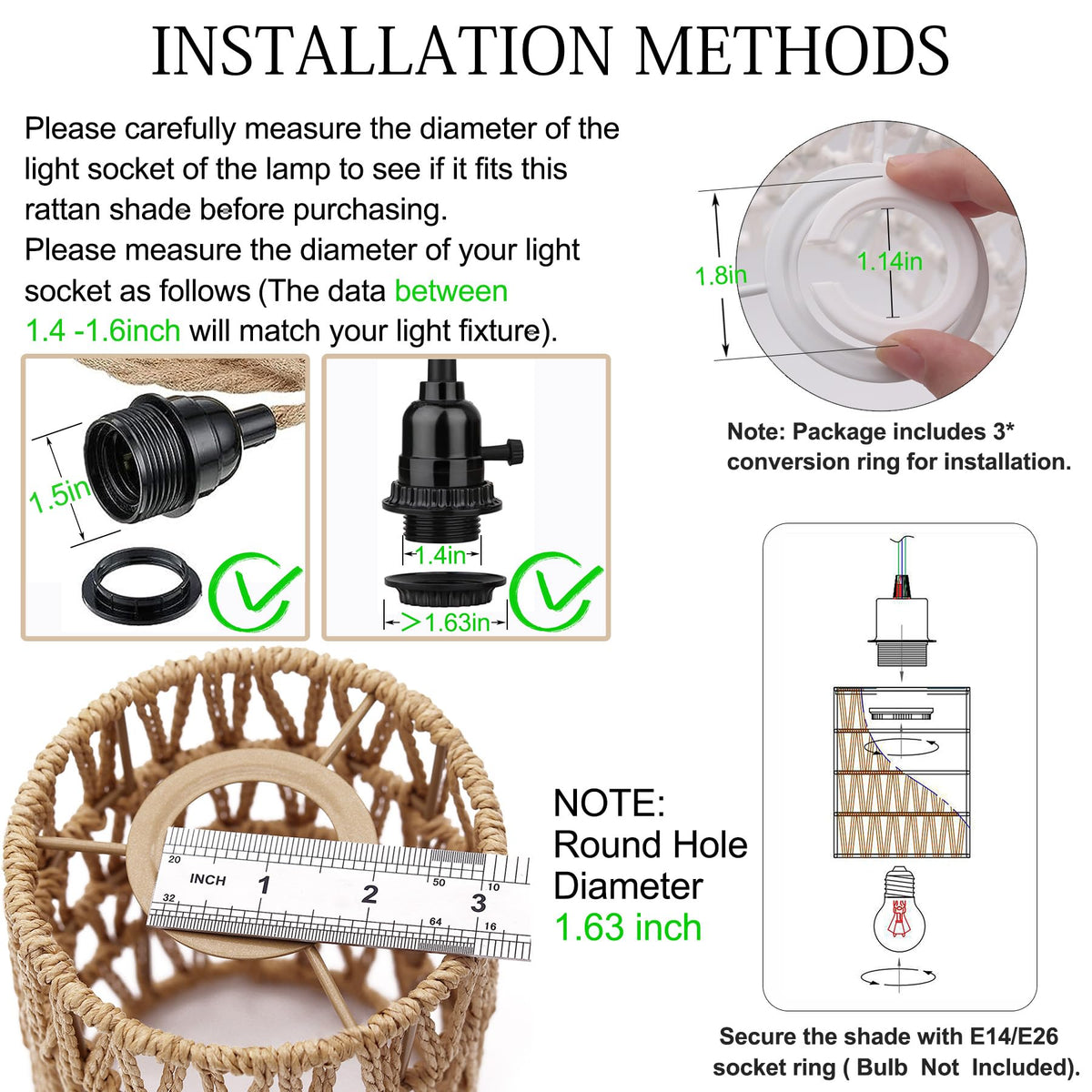 Q: Do the lamp shades come with any additional accessories?A: Yes, the package includes three white conversion rings to facilitate compatibility with E14/E26 fixtures.