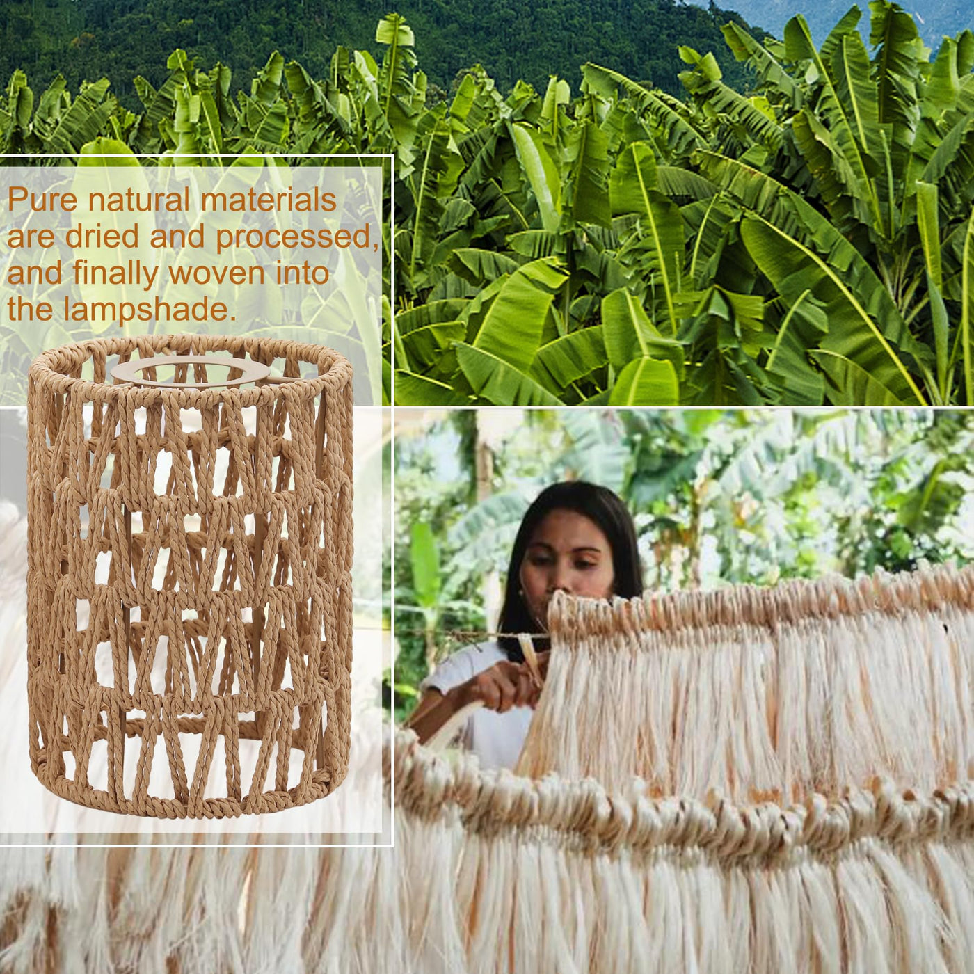 Giutna Rattan Lamp Shade, 4-Pack Retro Small Wicker Lamp Shade Replacement, Boho Woven Pendant Light Lampshade Cover For Chandelier,Lamp Holder,Ceiling Light,Pendant Light,Floor Lamps